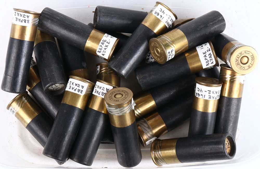 | Large lot of loaded paper shotshells. Grade: Excellent - Valu...