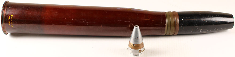 US Military shell & projectile, 90mm, H/S: ''H9'', projectile marked, ''YSW-1-16-1952-90MM-T91'', OAL- 37''. Grade: Excellent - Value: 10 to 100