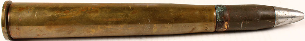 Military brass shell & projectile, 40mm, H/S: ''40MM M25'', ''LOT EA 44A'', ''1944'', primer is marked, ''LS-7-229'', ''M38A1'', ''44'', OAL- 17 1/2''. Grade: very good + - Value: 10 to 100