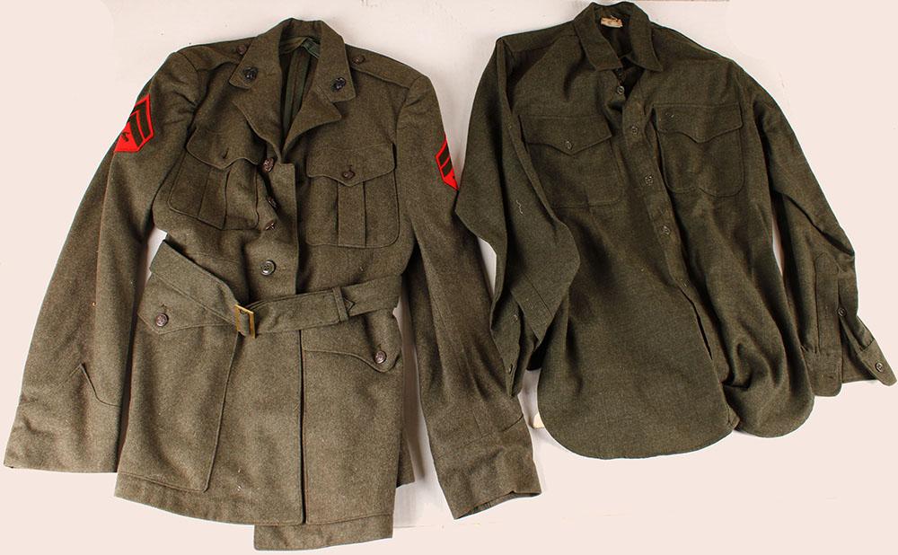US, WW2 Marines, jacket & battle shirt, jacket size 43, shirt size 13-33. Grade: Very Good ++ - Value: 2 to 60