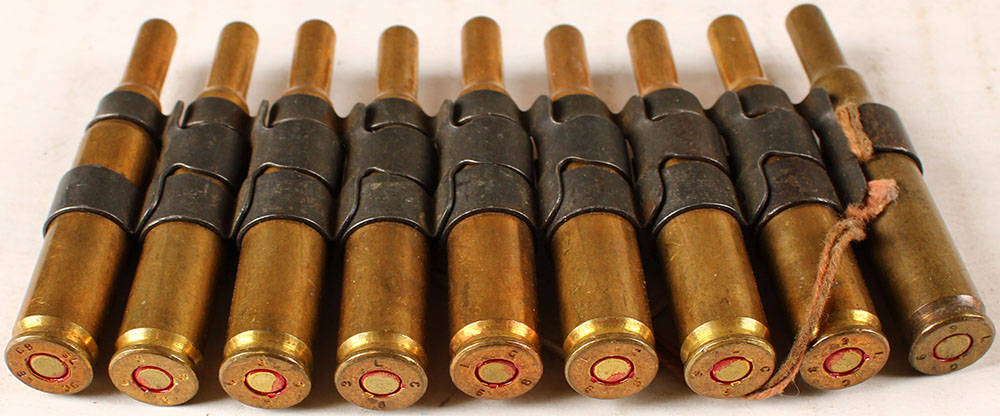| Lot of 9 linked 7.62x51mm blanks. Grade: Excellent - Value: 2...