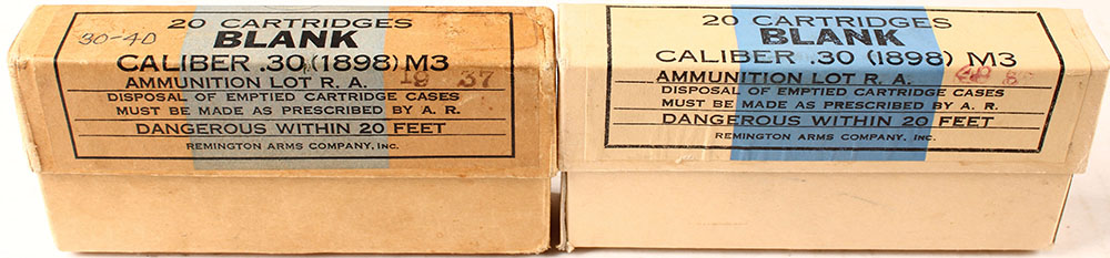 Lot of two Remington, .30 1898 M3 (30-40 Krag) blanks, one sealed one full, box's are solid with light wear, ammo is excellent. Grade: Excellent - Value: 10 to 50
