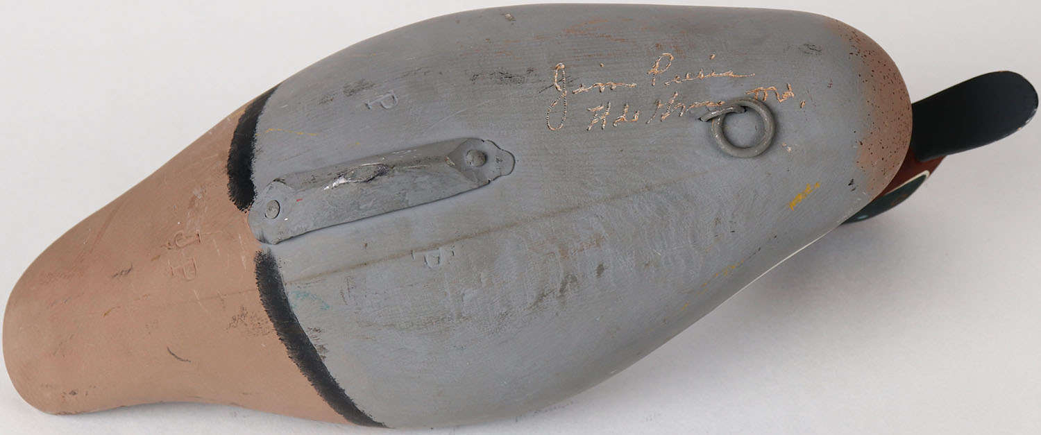 Green Wing Teal Drake by Jim Pierce, Havre de Grace, MD painted eyes, solid wood, structurally excellent, signed on bottom, original paint. Grade: MINT - Value: 50 to 150
