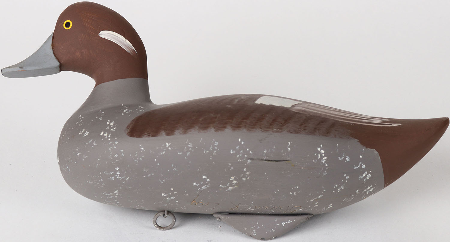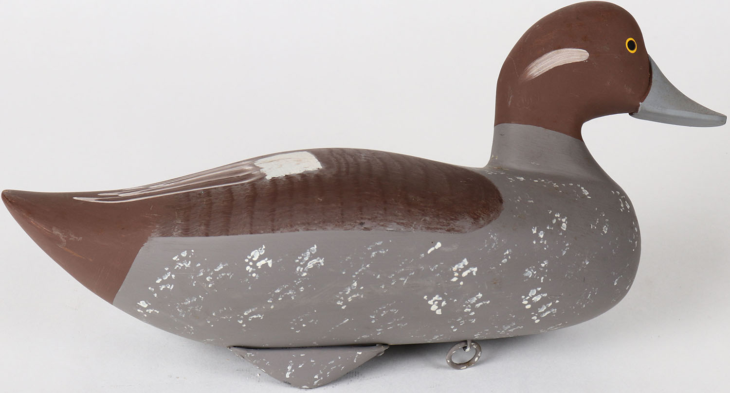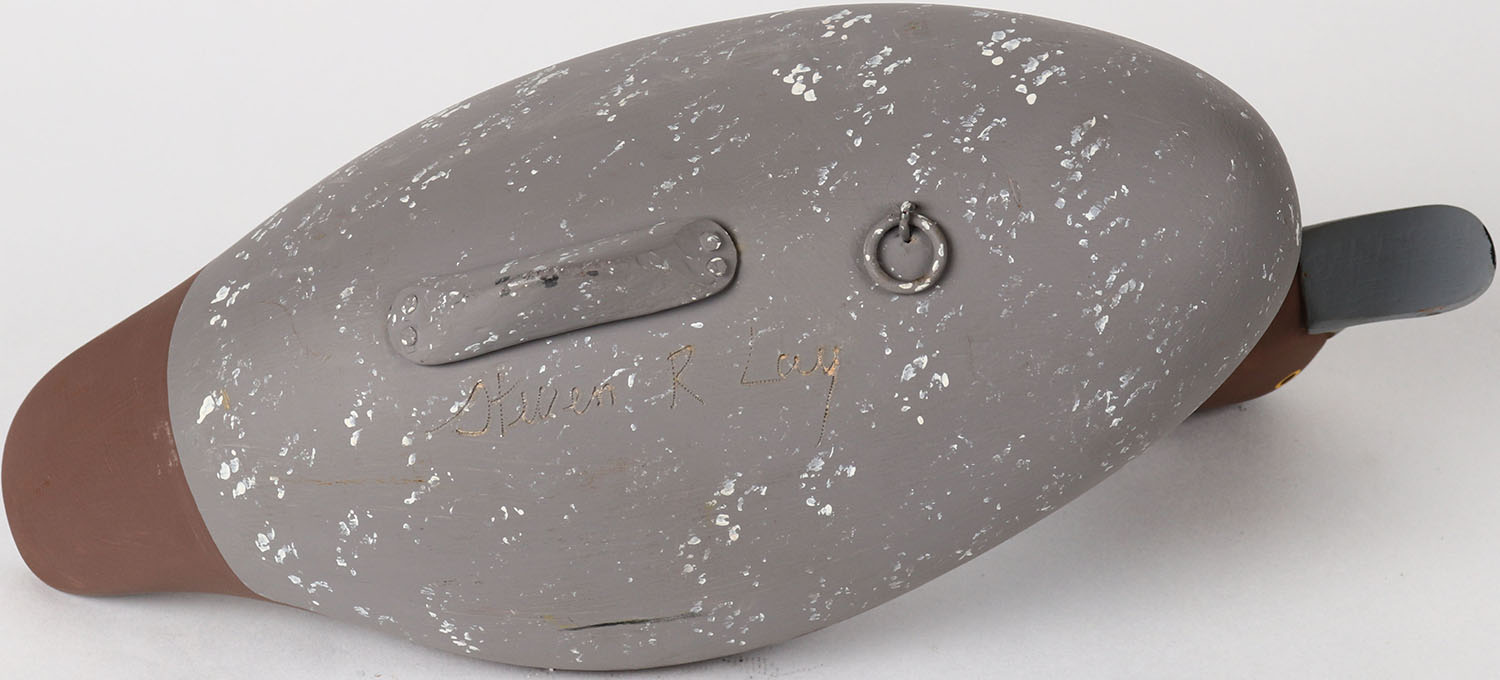 Bluebill Hen by Steven R Lay, Havre de Grace, MD, painted eyes, solid wood, structurally excellent, branded WALKER on bottom, repainted. Grade: Excellent + - Value: 50 to 100
