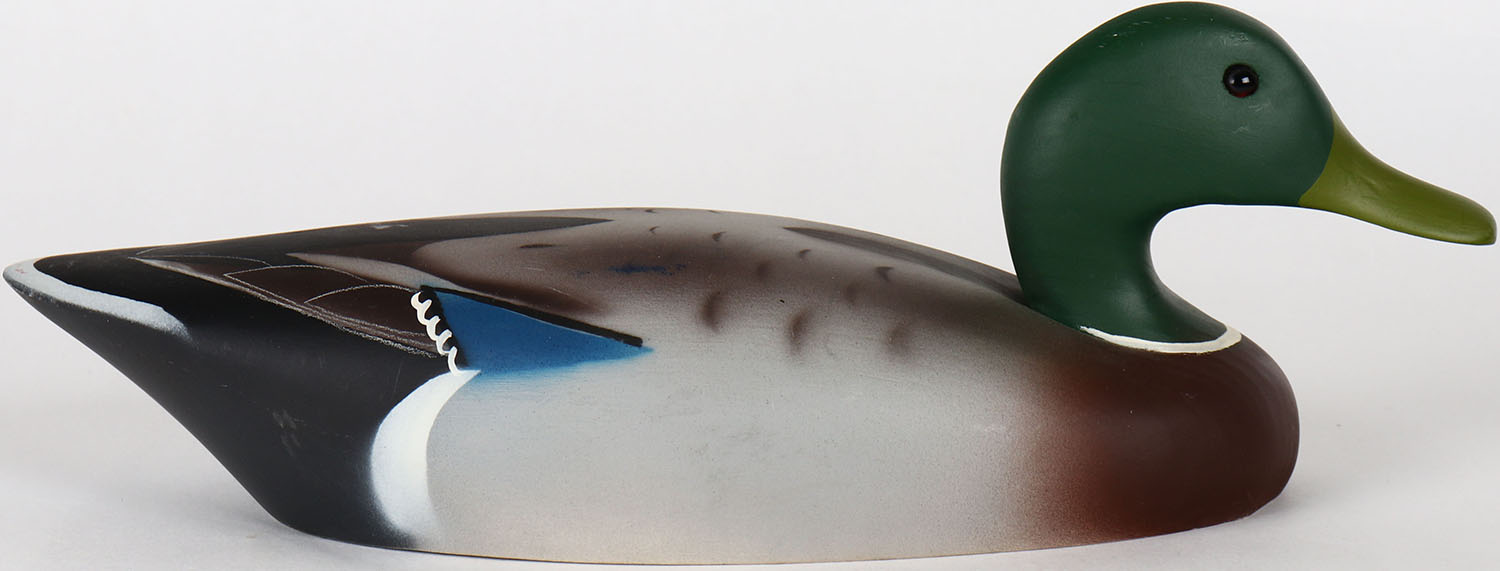 Mallard Drake by unknown maker, glass eyes, solid wood, structurally excellent, original airbrushed? paint. Grade: Excellent + - Value: 30 to 60