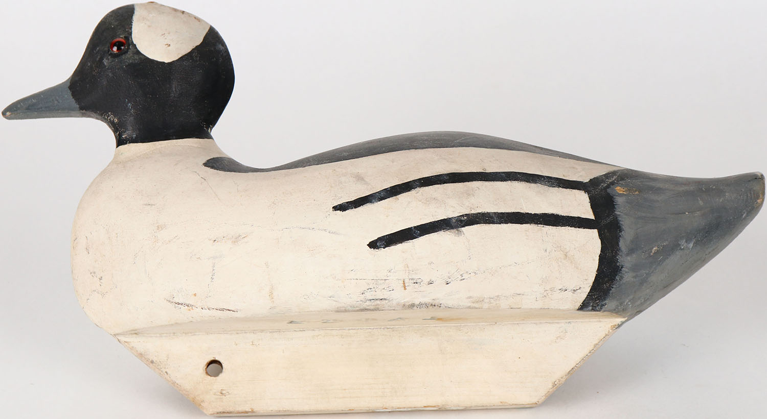 Bufflehead Drake by Tyler, glass eyes, solid wood, structurally excellent, branded TYLER on bottom, original paint. Grade: Excellent - Value: 30 to 60