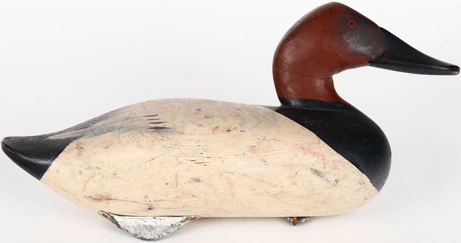 Canvasback Drake by unknown maker, Havre de Grace, MD, painted eyes, solid wood, structurally excellent, original paint. Grade: Excellent - Value: 100 to 200