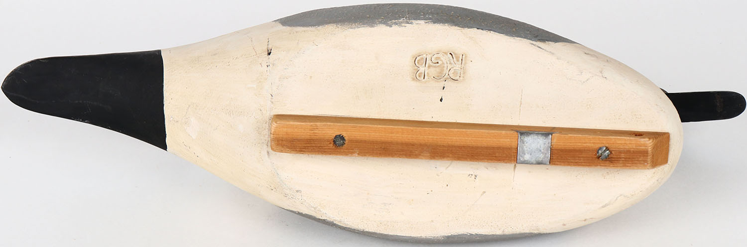 Pintail Drake by RGB, glass eyes, hollow wood, structurally excellent, branded RGB on bottom, original paint. Grade: MINT - Value: 30 to 60