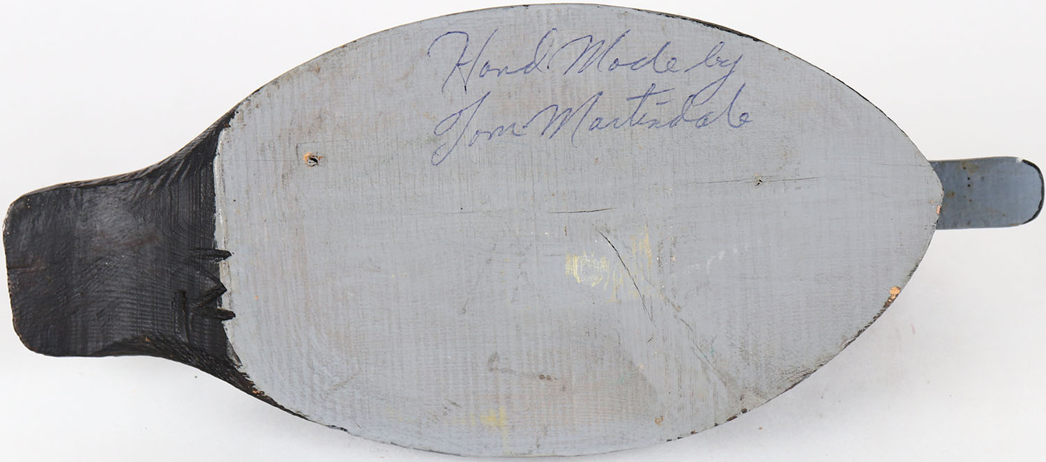 Redhead Drake by Tom Martindale, Ontario, Canada, glass eyes, solid wood, structurally excellent, signed on bottom, original paint. Grade: MINT - Value: 50 to 100