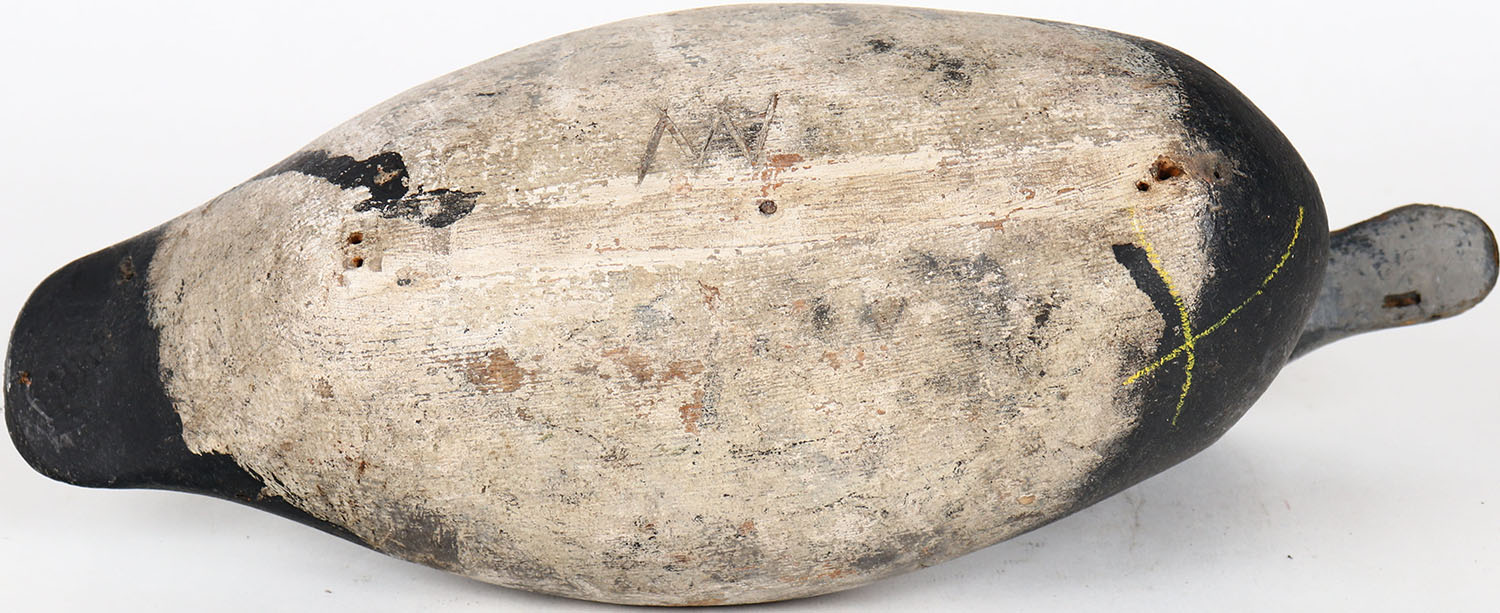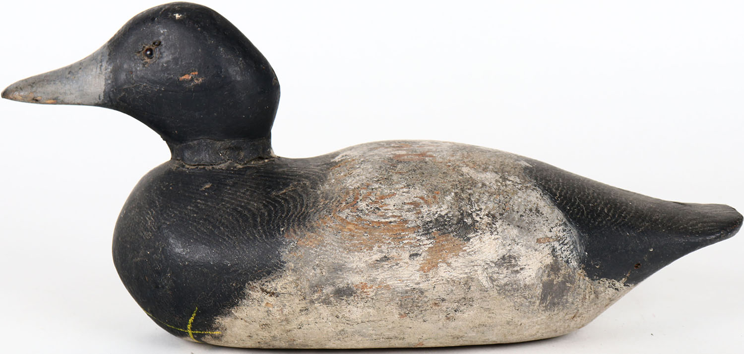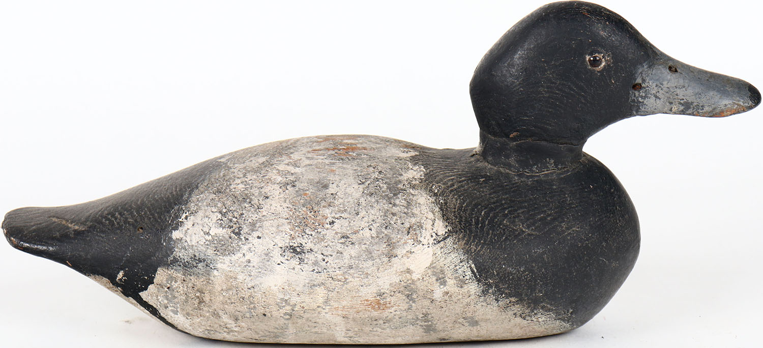 Bluebill Drake by AW, glass eyes, solid wood, structurally excellent, branded AW on bottom, original paint. Grade: Very Good ++ - Value: 40 to 80