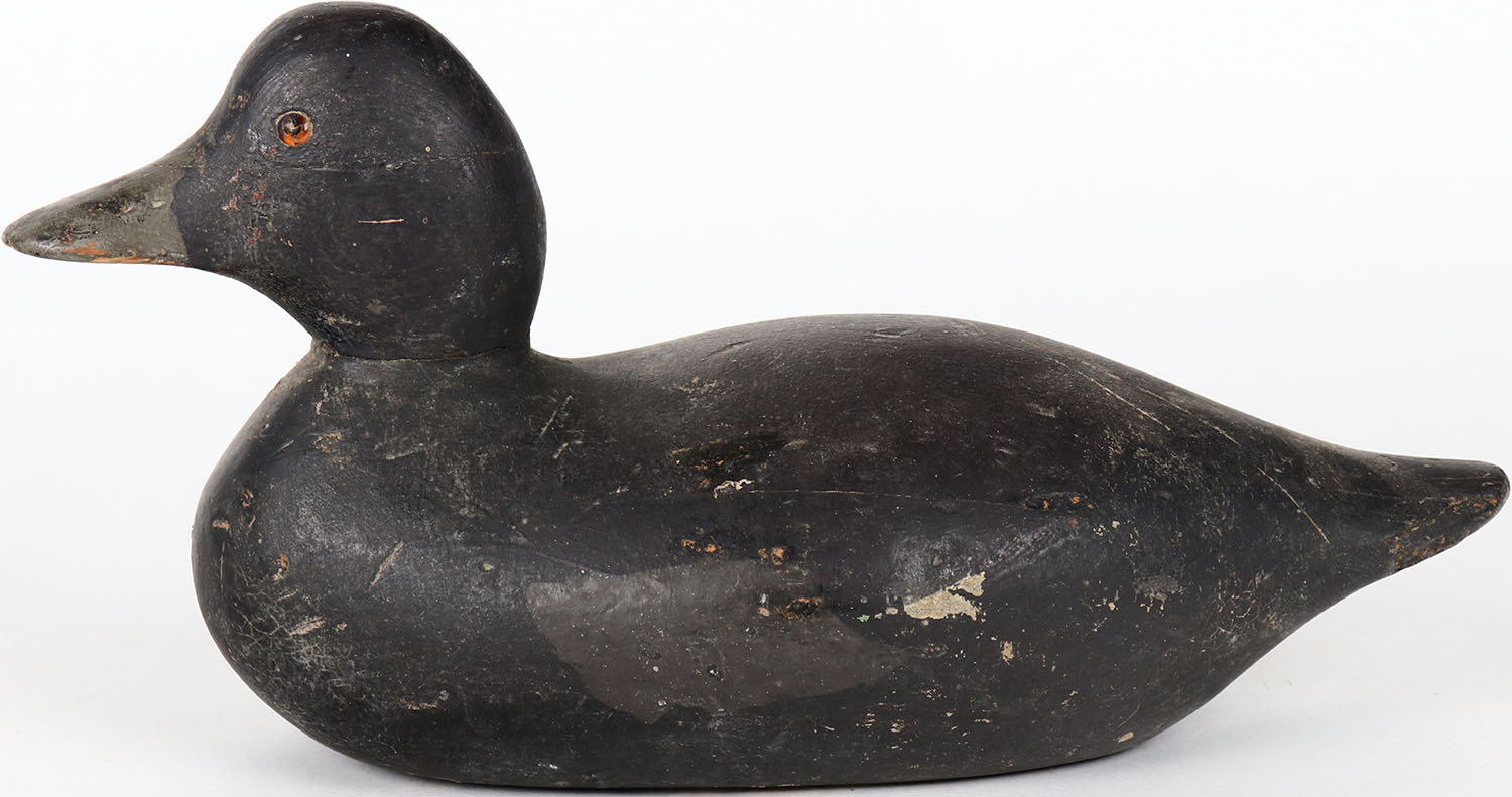 Bluebill Drake by Meyr, glass eyes, solid wood, structurally excellent, signed on bottom, original paint. Grade: Very Good ++ - Value: 40 to 80