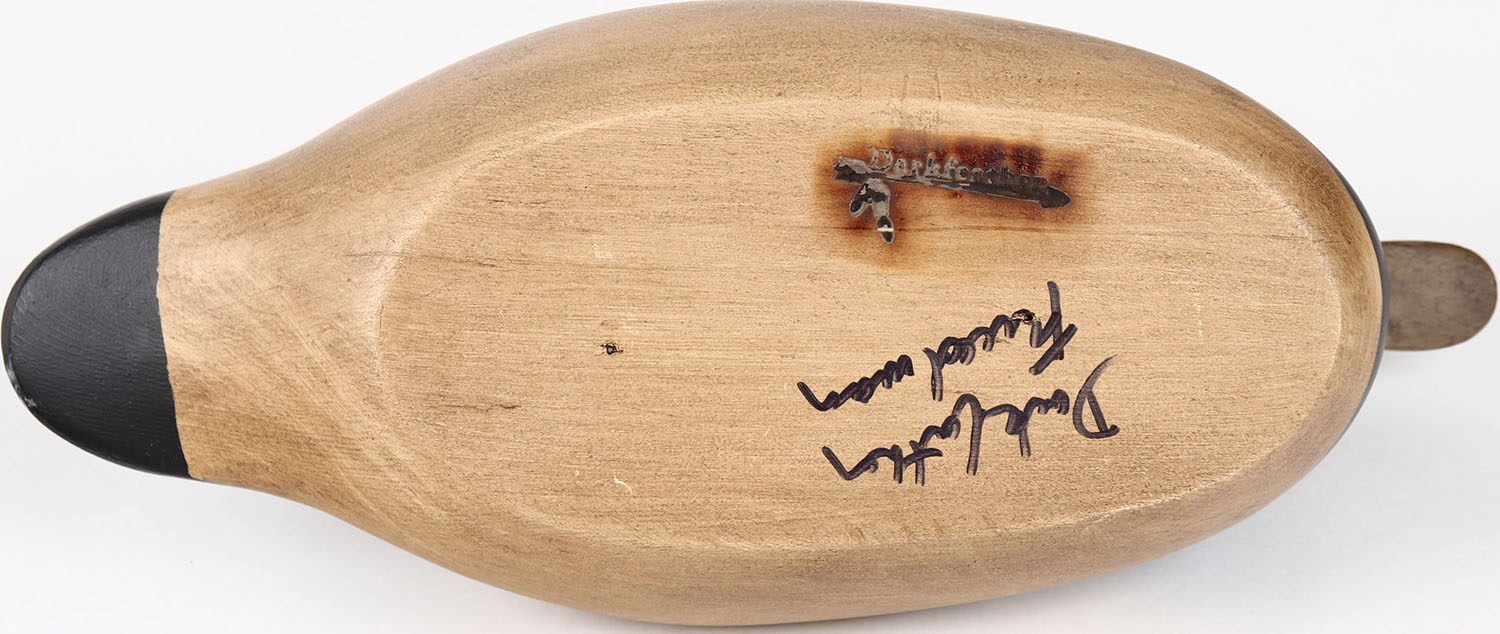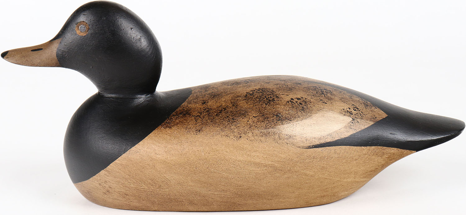 Bluebill Drake by Darkfeather Freedman, tack eyes, solid wood, structurally excellent, signed on bottom, original paint. Grade: MINT - Value: 50 to 100