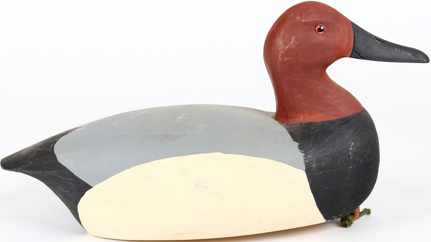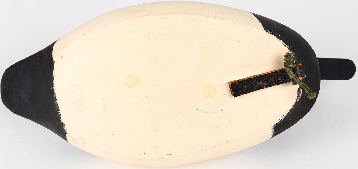 Canvasback Drake by CW, glass eyes, hollow wood, structurally excellent, branded CW on bottom, original paint. Grade: MINT - Value: 30 to 60