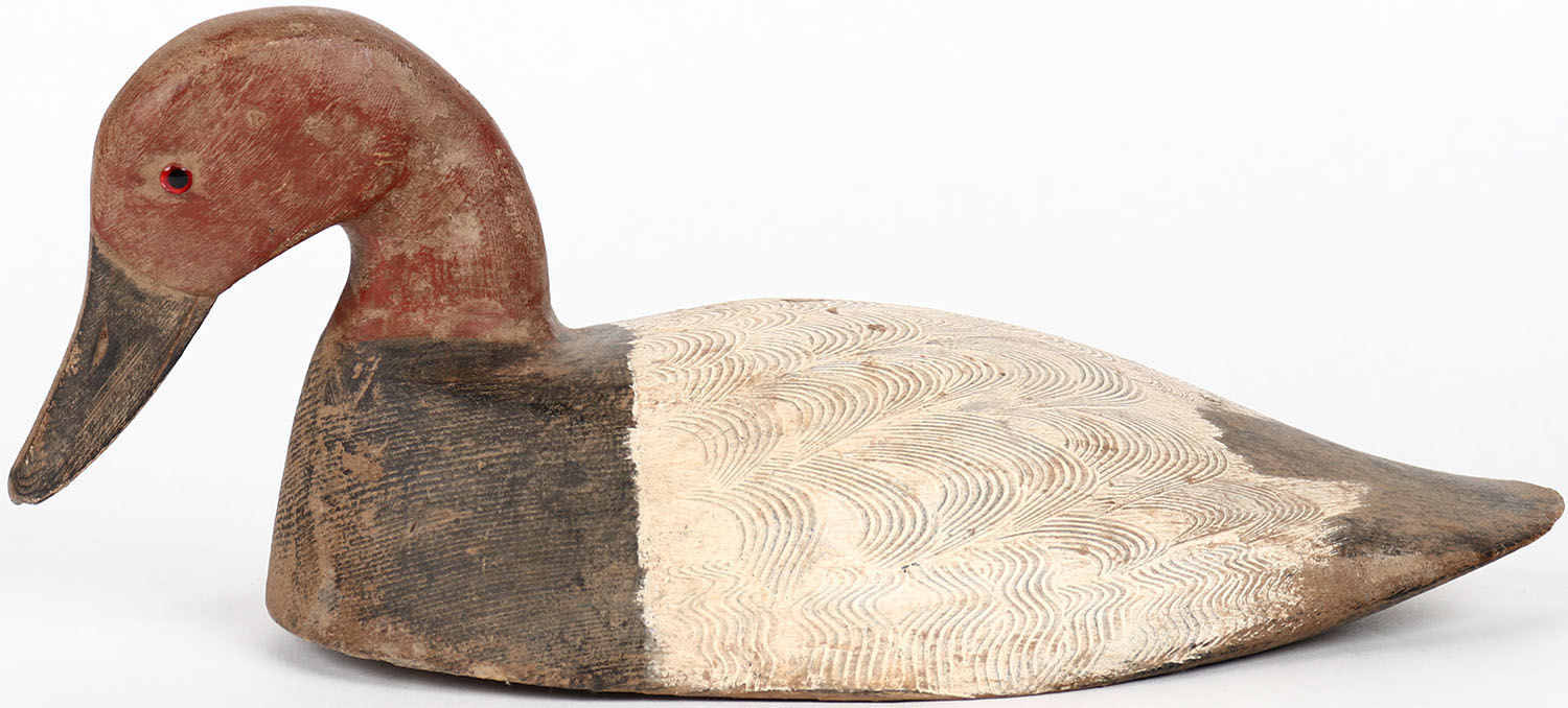 Canvasback Drake by unknown maker, glass eyes, solid wood, structurally excellent, original paint with comb painting. Grade: MINT - Value: 40 to 80