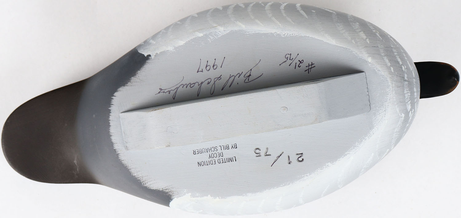 Goldeneye Hen by Bill Schauber, glass eyes, solid wood, structurally excellent, signed on bottom, original paint. Grade: MINT - Value: 40 to 80