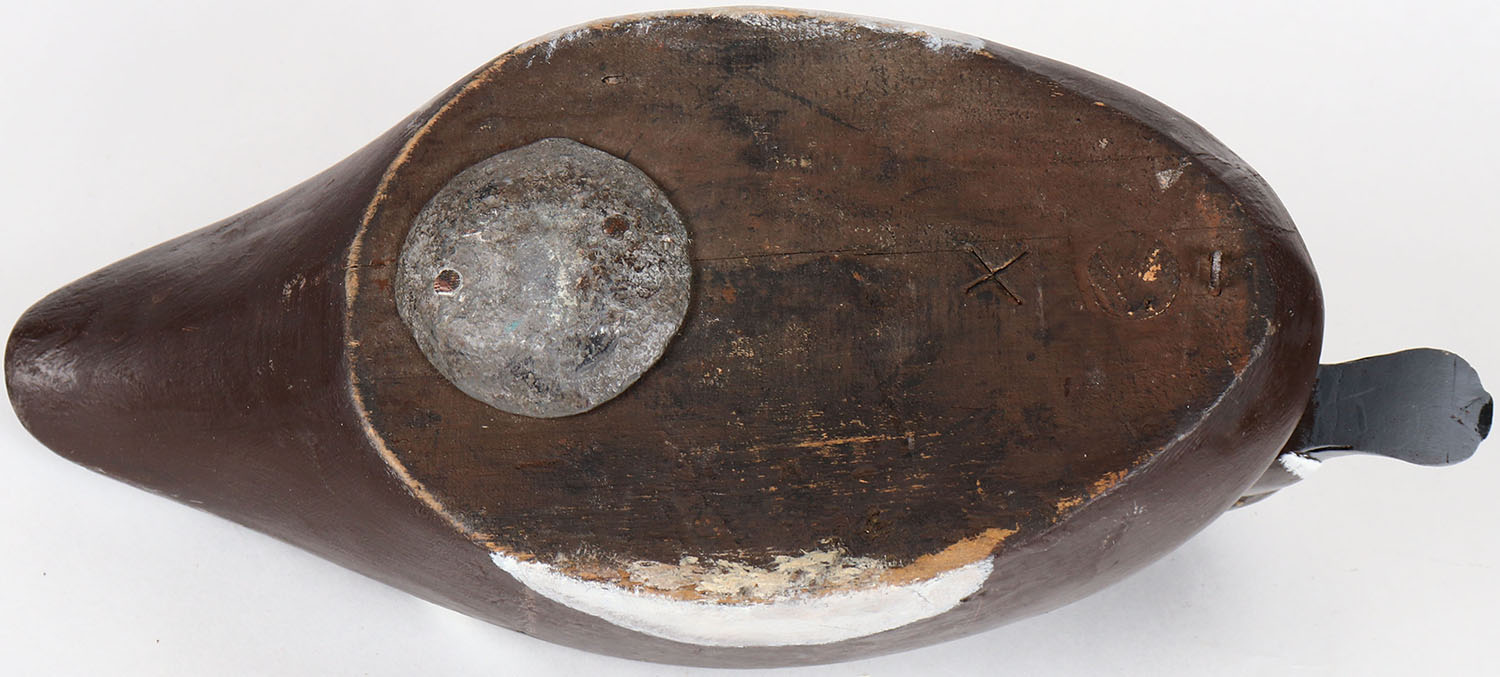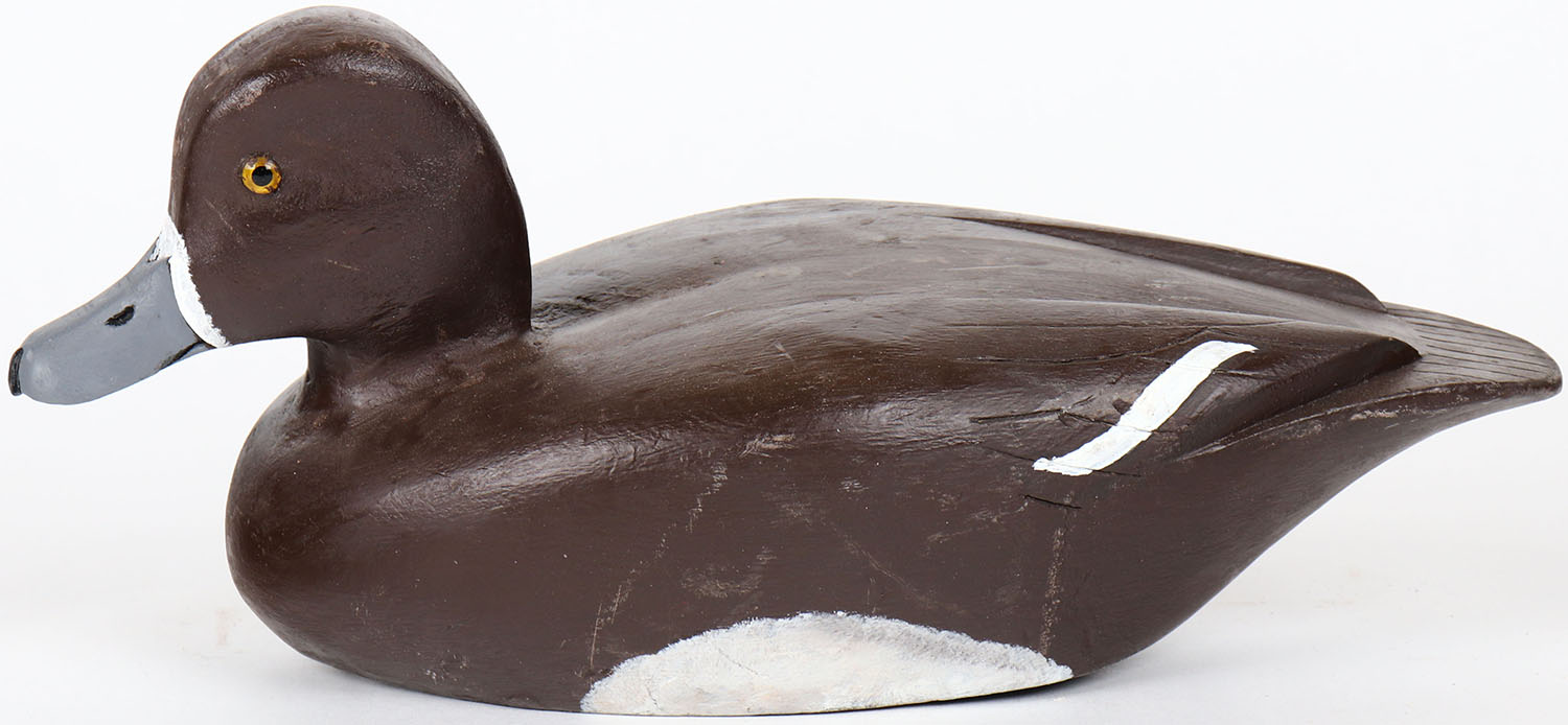 Bluebill Hen by unknown maker, CAN, glass eyes, solid wood, structurally excellent, original paint. Grade: MINT - Value: 50 to 100