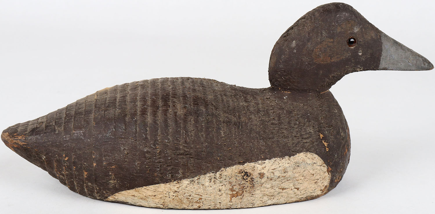 Bluebill Drake by unknown maker, glass eyes, solid wood, structurally excellent, original paint. Grade: Excellent + - Value: 30 to 60