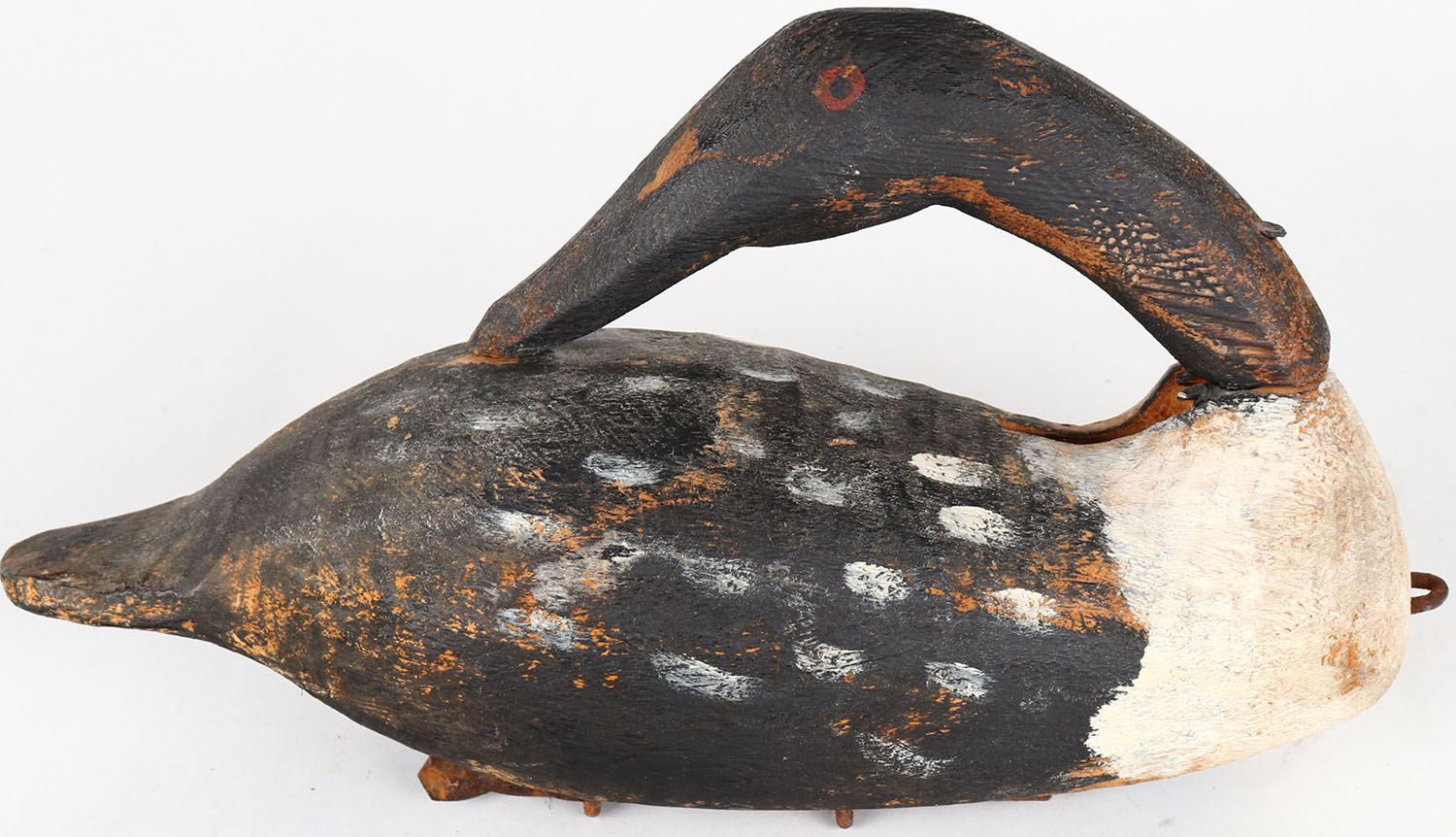 Sleeping Loon by John H. Culp, Columbia, Penna, painted eyes, solid wood, structurally excellent, original paint. Grade: Very Good ++ - Value: 40 to 80