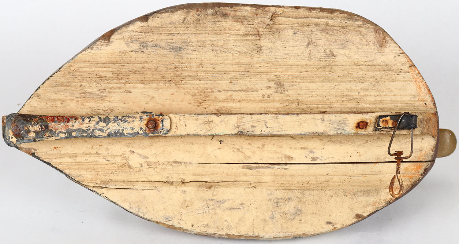 Mallard Drake by unknown maker, glass eyes, solid wood, has age cracks on bottom, head is loose, original paint. Grade: Very Good ++ - Value: 20 to 40