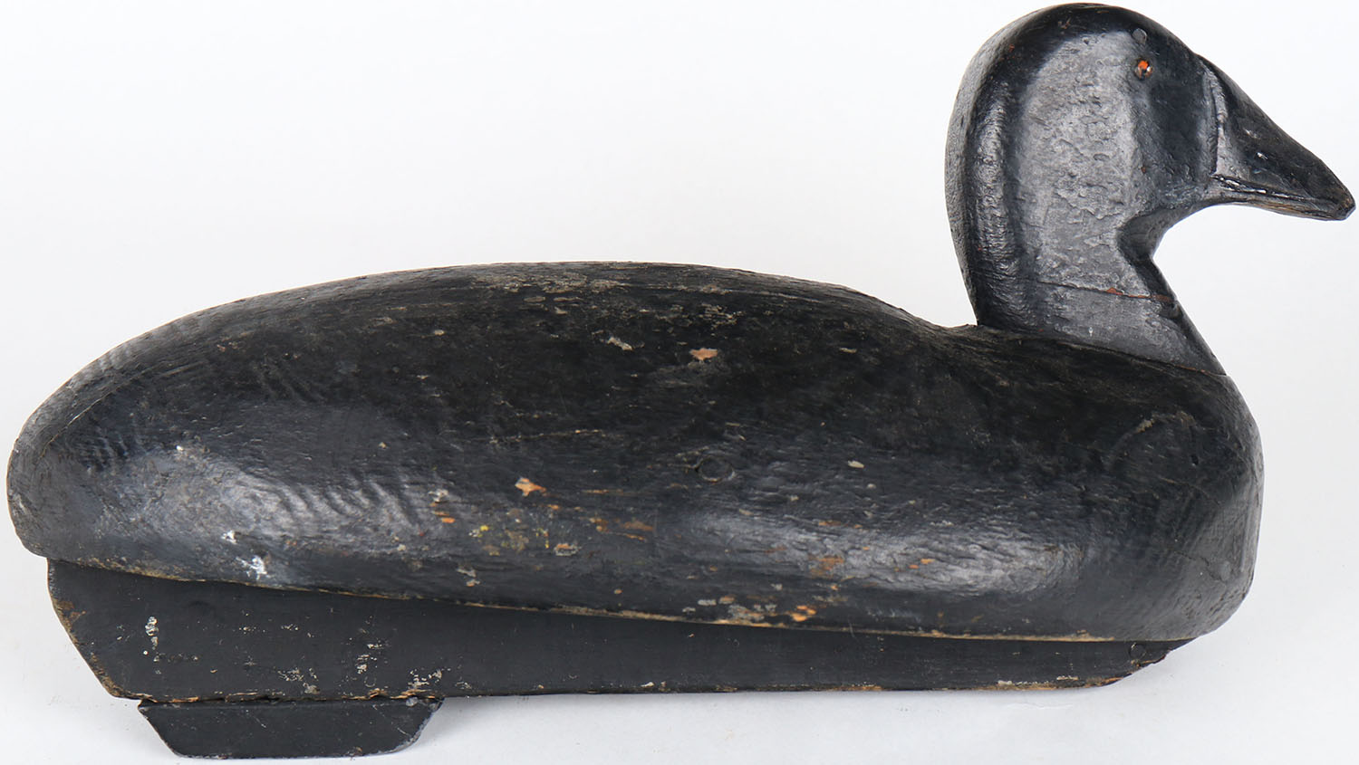 Bluebill by unknown maker, painted eyes, solid wood, structurally excellent, repainted. Grade: Very Good + - Value: 40 to 80