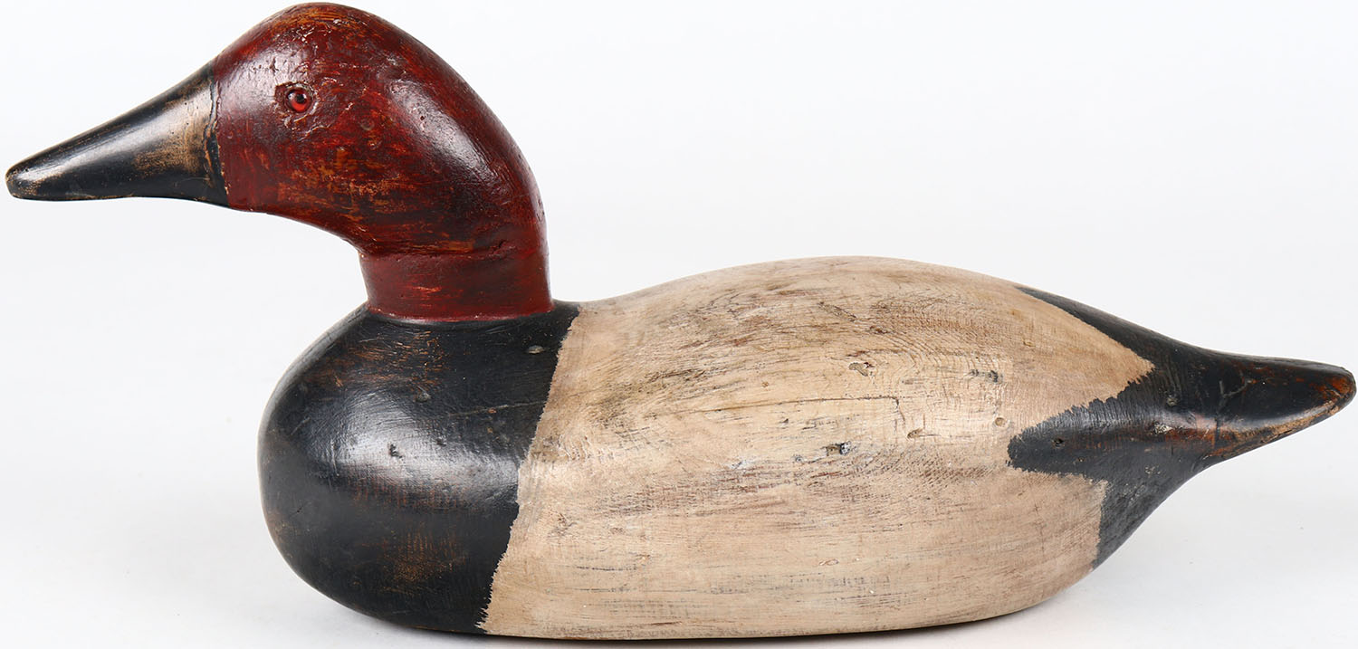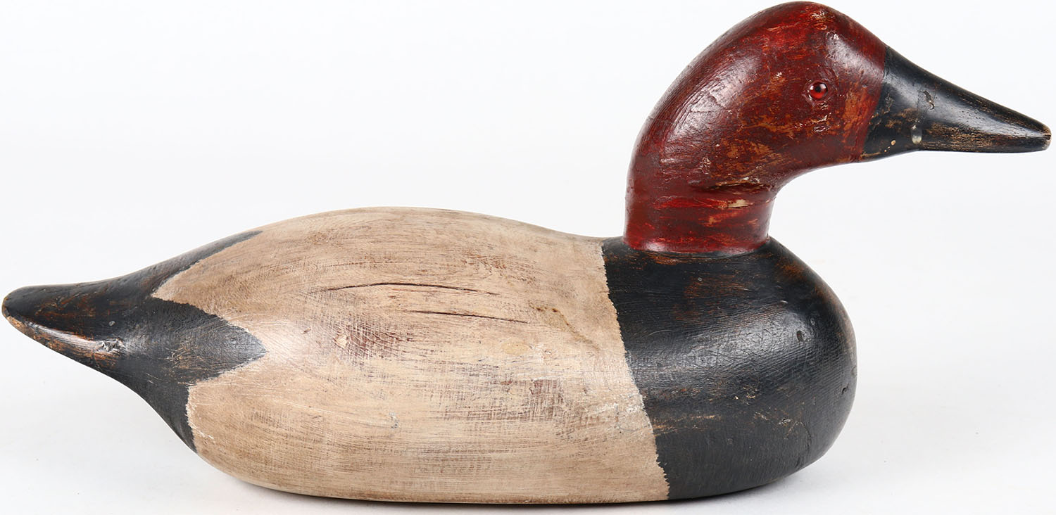Canvasback Drake by unknown maker, glass eyes, solid wood, structurally excellent, original paint. Grade: Excellent - Value: 40 to 80