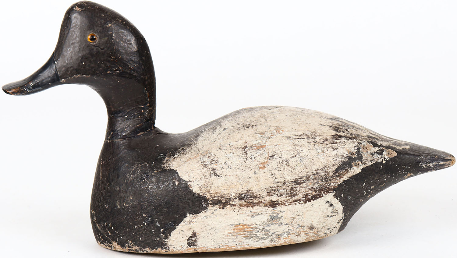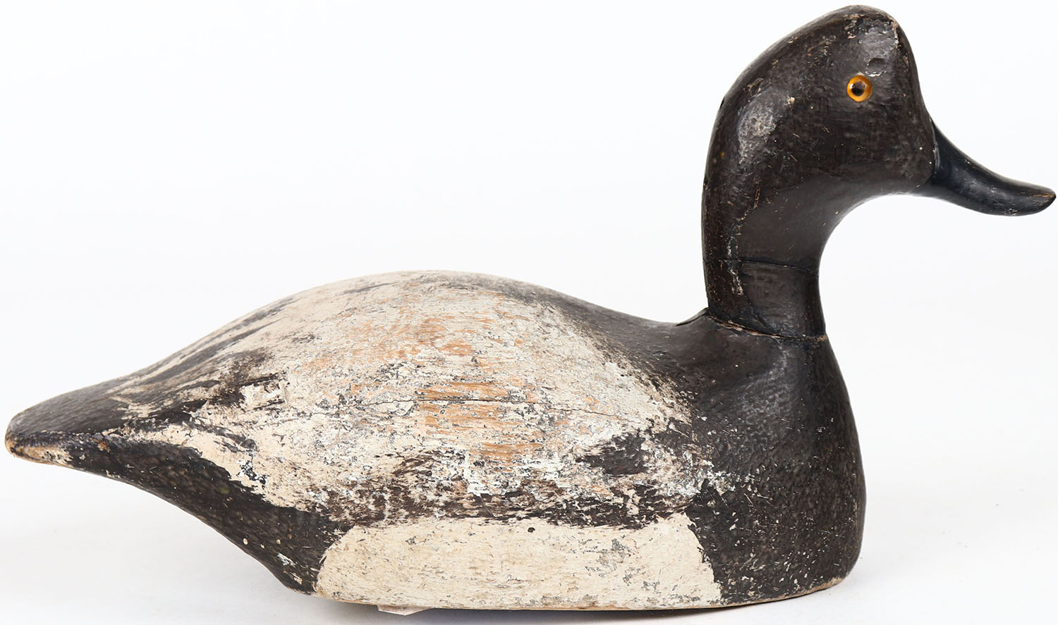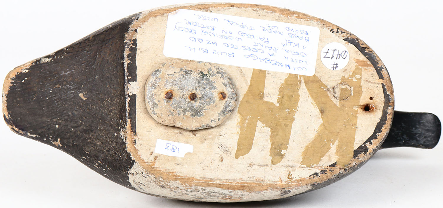 Bluebill Drake by KH, glass eyes, solid wood, structurally excellent, branded KH on bottom, original paint. Grade: Excellent - Value: 30 to 60