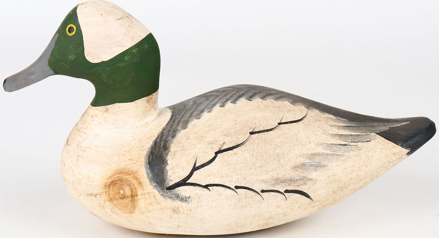 Bufflehead Drake by Capt. Harry R. Jobes, Havre de Grace, MD, painted eyes, solid wood, structurally excellent, signed on bottom, original paint. Grade: MINT - Value: 60 to 150