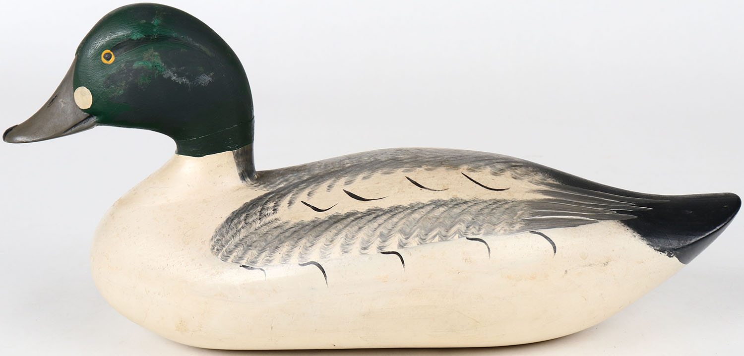 Goldeneye Drake by Madison Mitchell, painted eyes, solid wood, structurally excellent, signed on bottom, original paint. Grade: MINT - Value: 150 to 600