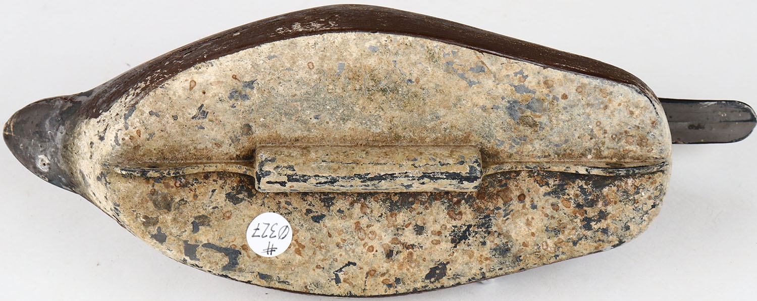 Bluebill Hen by unknown maker, Ontario, CAN, tack eyes, plastic, structurally excellent, signed on bottom, original paint. Grade: Very Good ++ - Value: 20 to 40