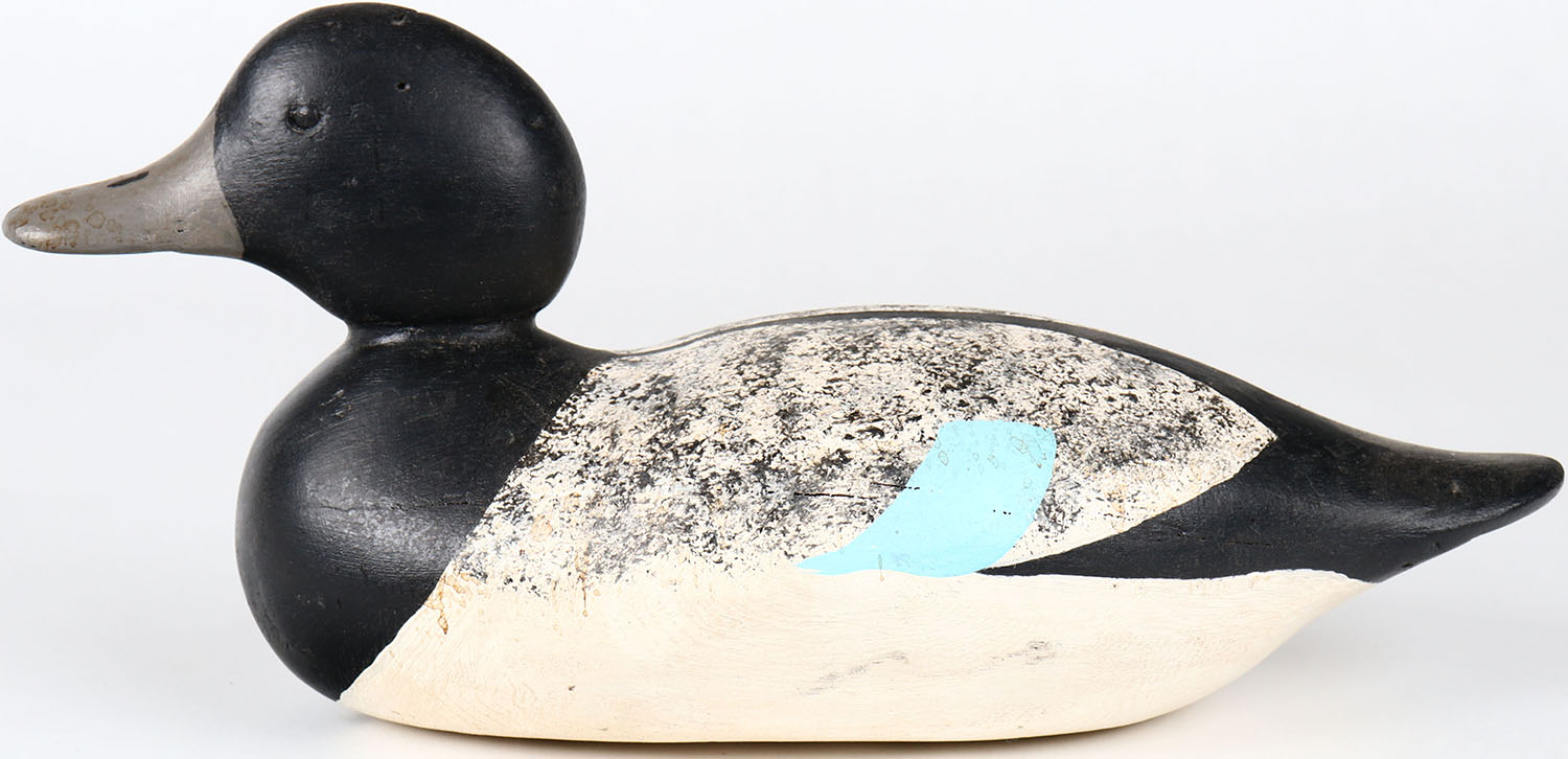 Bluebill Drake by Mason Decoy Co., MI, tack eyes, solid wood, structurally excellent, repaint. Grade: MINT - Value: 30 to 60