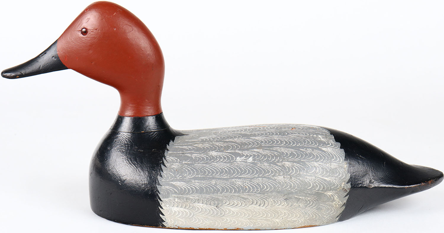 Canvasback Drake by Frank Coombs, Alexandria Bay, NY., glass eyes, structurally excellent, solid wood, original paint with comb painting. Grade: Excellent - Value: 150 to 300