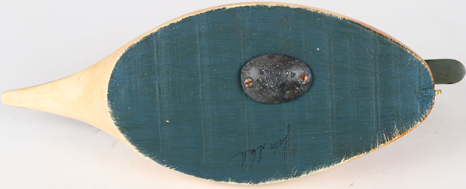 Old Squaw by Jim Slack, Peoria, IL?, glass eyes, structurally excellent, hollow wood, signed and branded on bottom, original paint. Grade: MINT - Value: 100 to 200