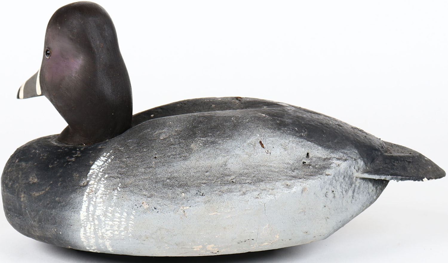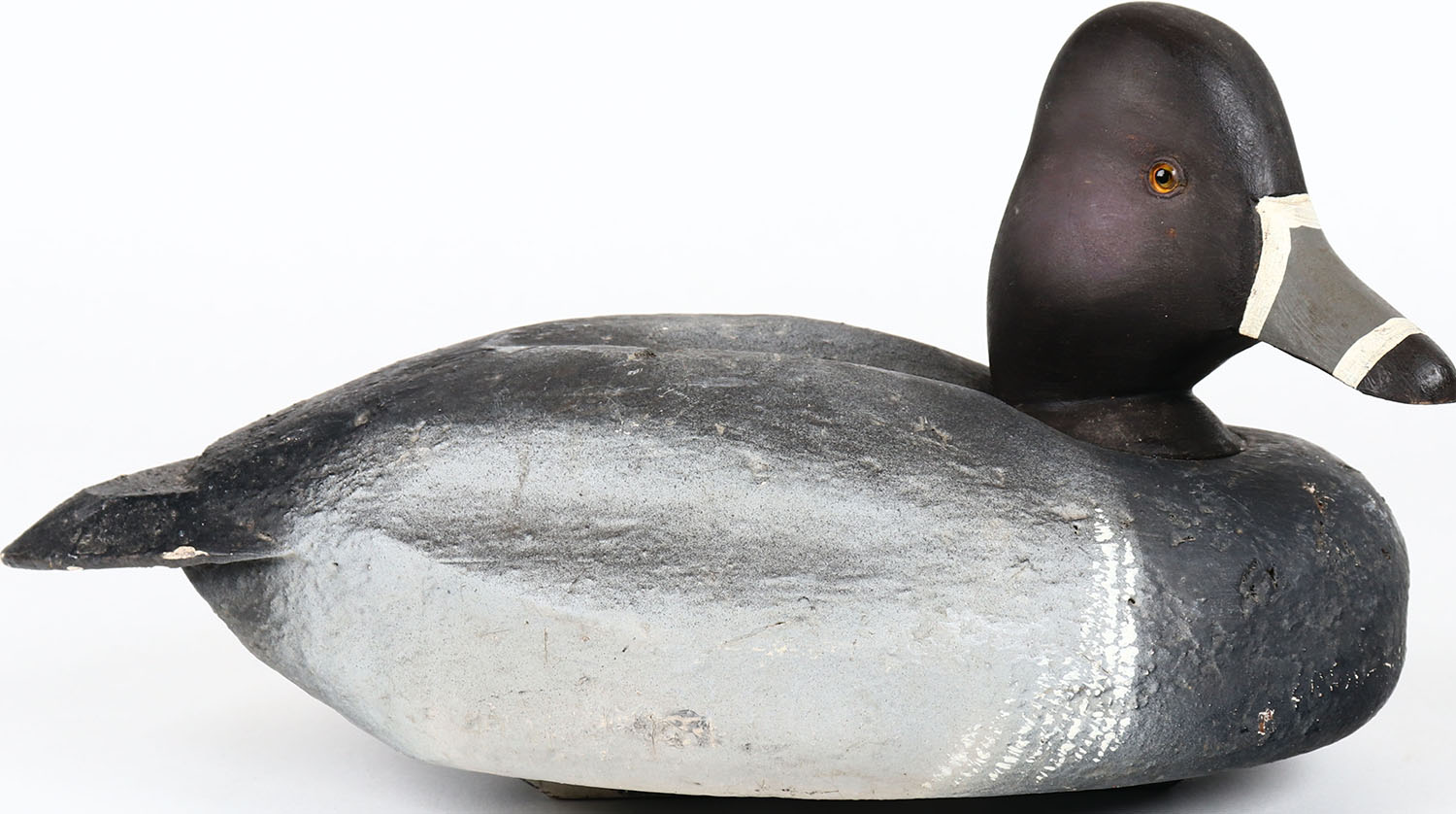 Ring Neck Drake by unknown maker, glass eyes, structurally excellent, solid cork body, original paint. Grade: MINT - Value: 30 to 60