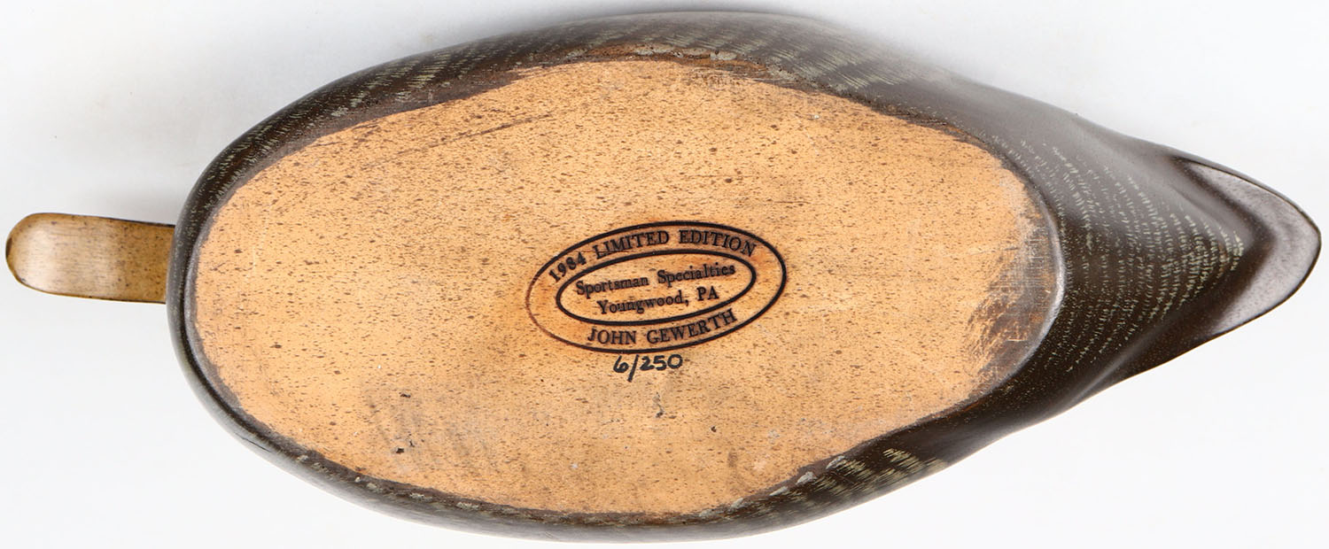 Mallard Hen by John Gewerth, Sportsman Specialties, Youngwood, PA, glass eyes, structurally excellent, solid wood, original paint. Grade: MINT - Value: 40 to 80