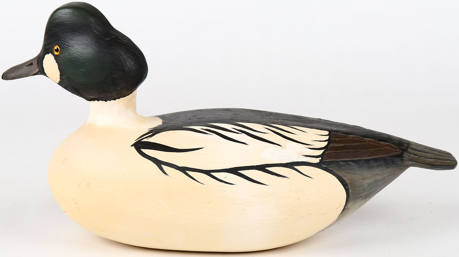 Goldeneye Drake by Lou Reineri, glass eyes, structurally excellent, solid wood, original paint. Grade: MINT - Value: 60 to 150