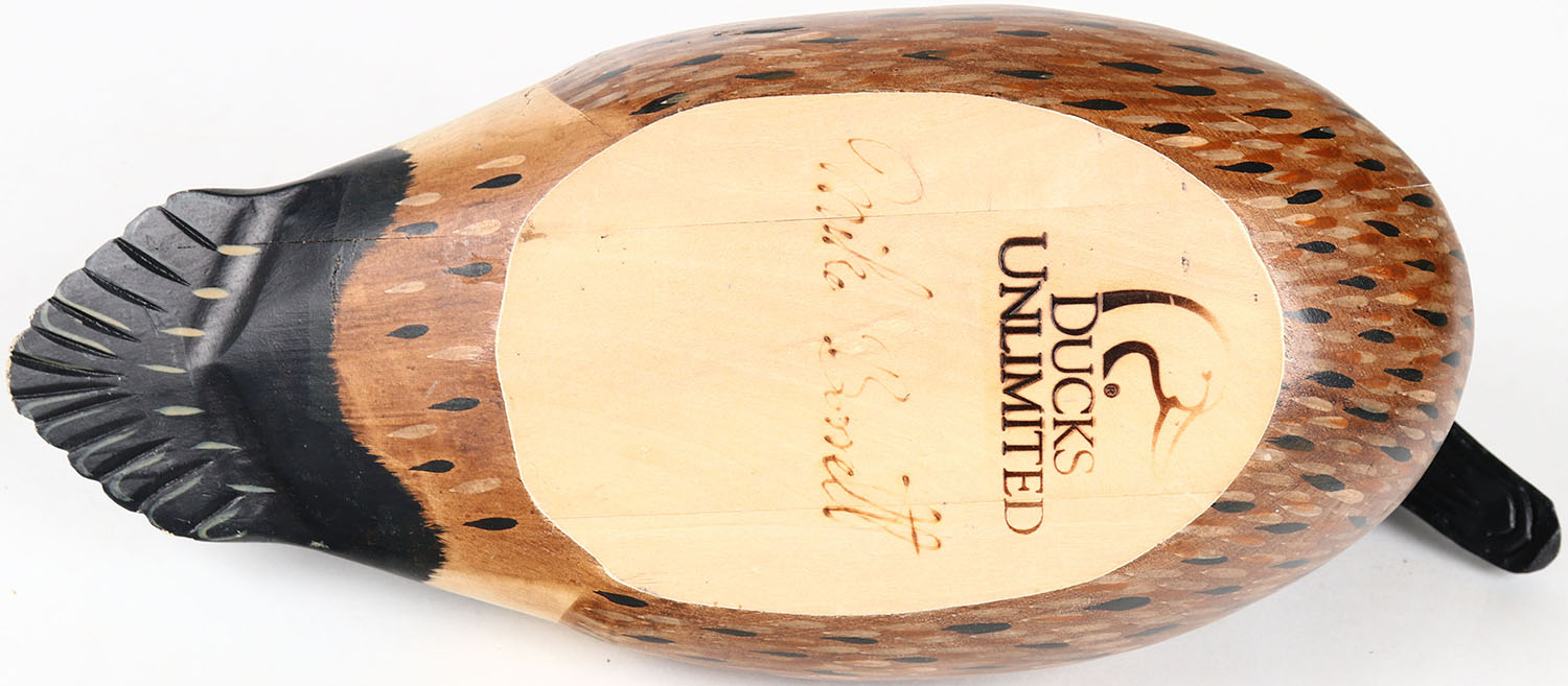 Blue Wing Teal Drake by Mike Borrett, WI, Ducks Unlimited, glass eyes, structurally excellent, solid wood, signed on bottom, original paint. Grade: MINT - Value: 30 to 60