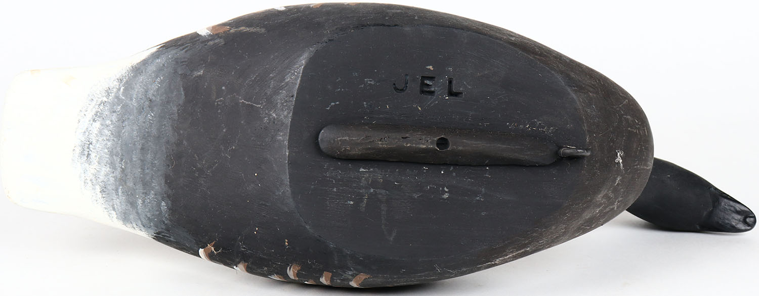 Black Brant by Jack Leach, Tacoma WA, glass eyes, hollow wood, structurally excellent, branded JEL on bottom, original paint. Grade: MINT - Value: 100 to 200