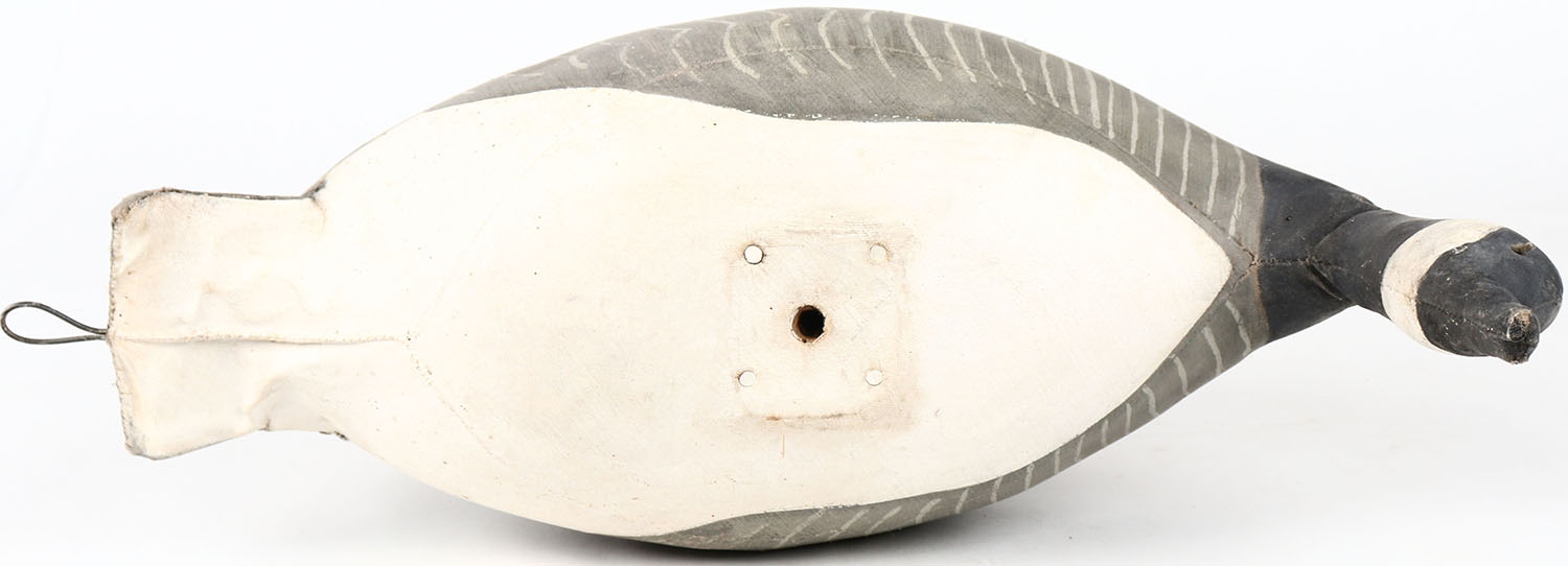 Canada Goose by unknown maker, canvas over cork, button eyes, one eye is missing, original paint. Grade: Very Good ++ - Value: 50 to 100
