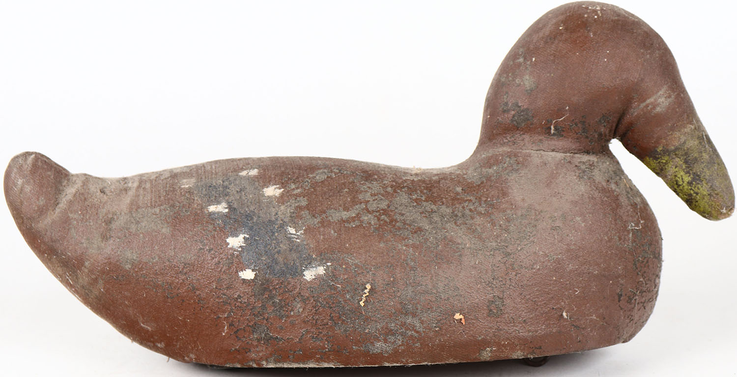 Mallard Hen by unknown maker, canvas over cork, no eyes, original paint. Grade: Excellent - Value: 50 to 100