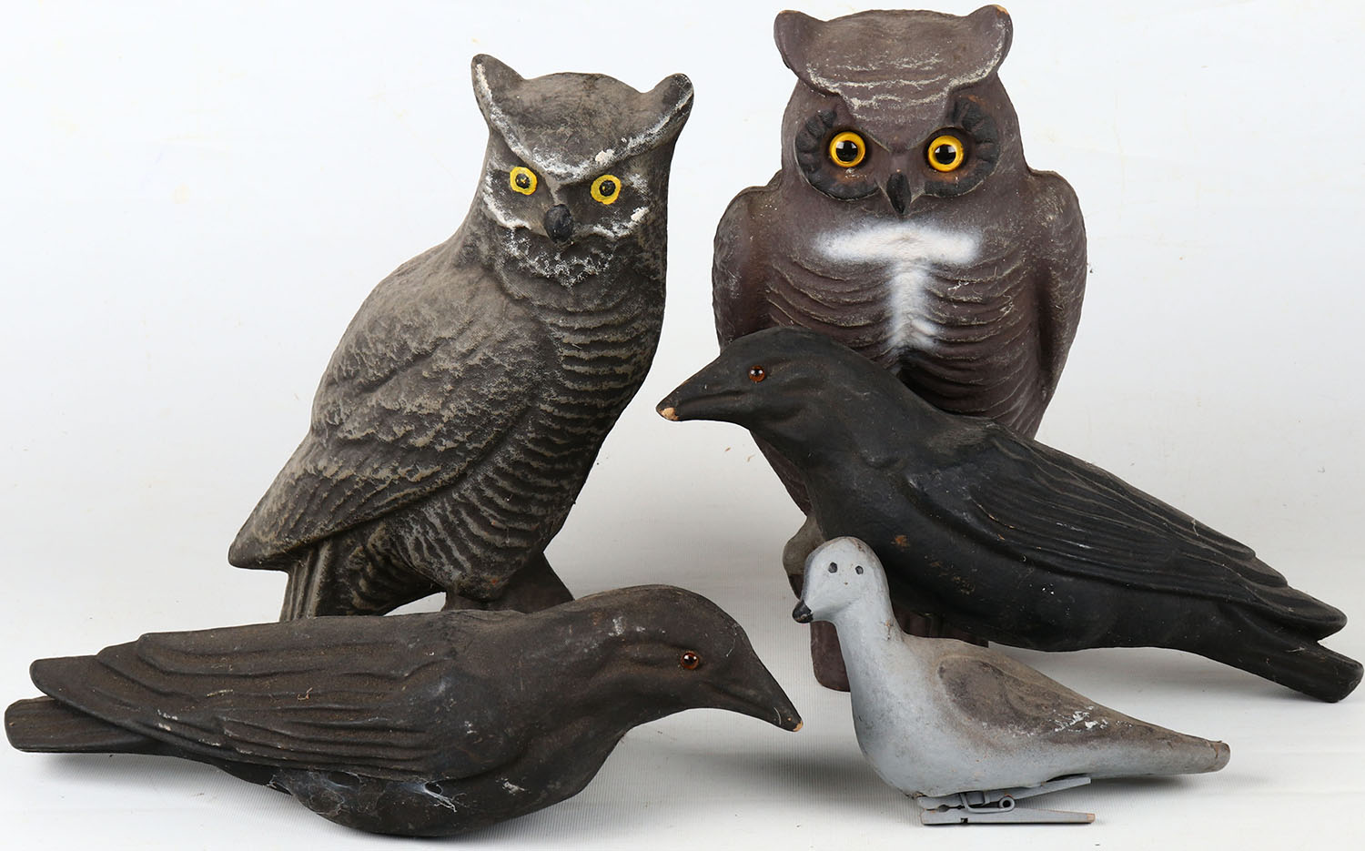 Lot of Owl & Crow paper mache' decoys. Grade: Very Good ++ - Value: 10 to 100