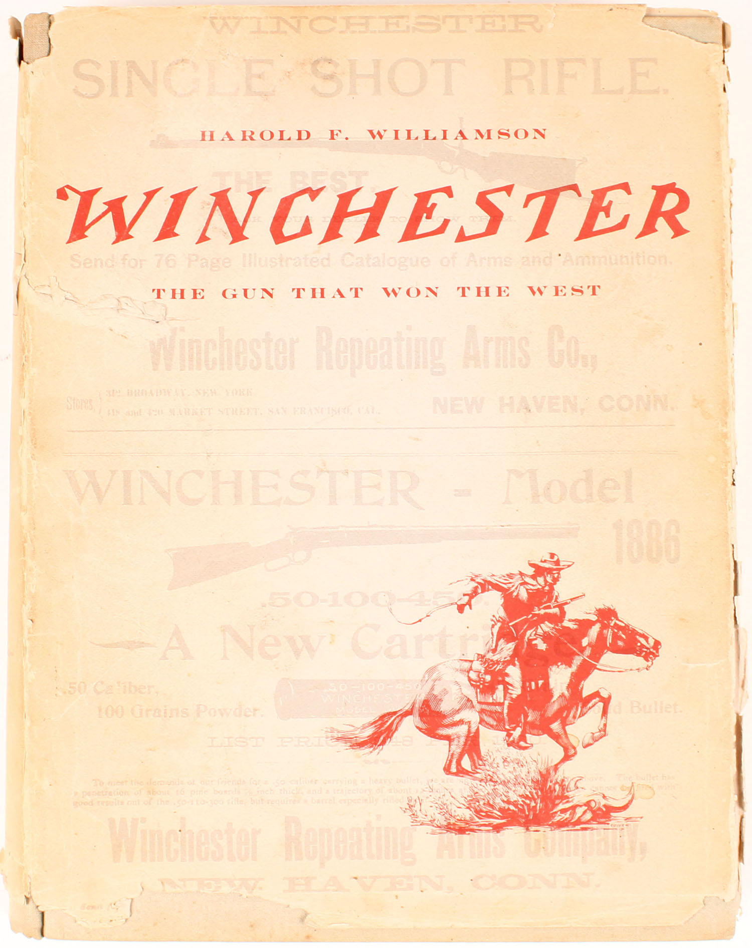 Winchester The Gun That Won The West by Harold F. Williamson 1952, 8 1/2'' x 11''. 494 pages, pages clean, binding tight, hardcover very good, dustjacket has multiple tears, B/W images. Value: Value: $75 Grade: Excellent - Value: 4 to 80
