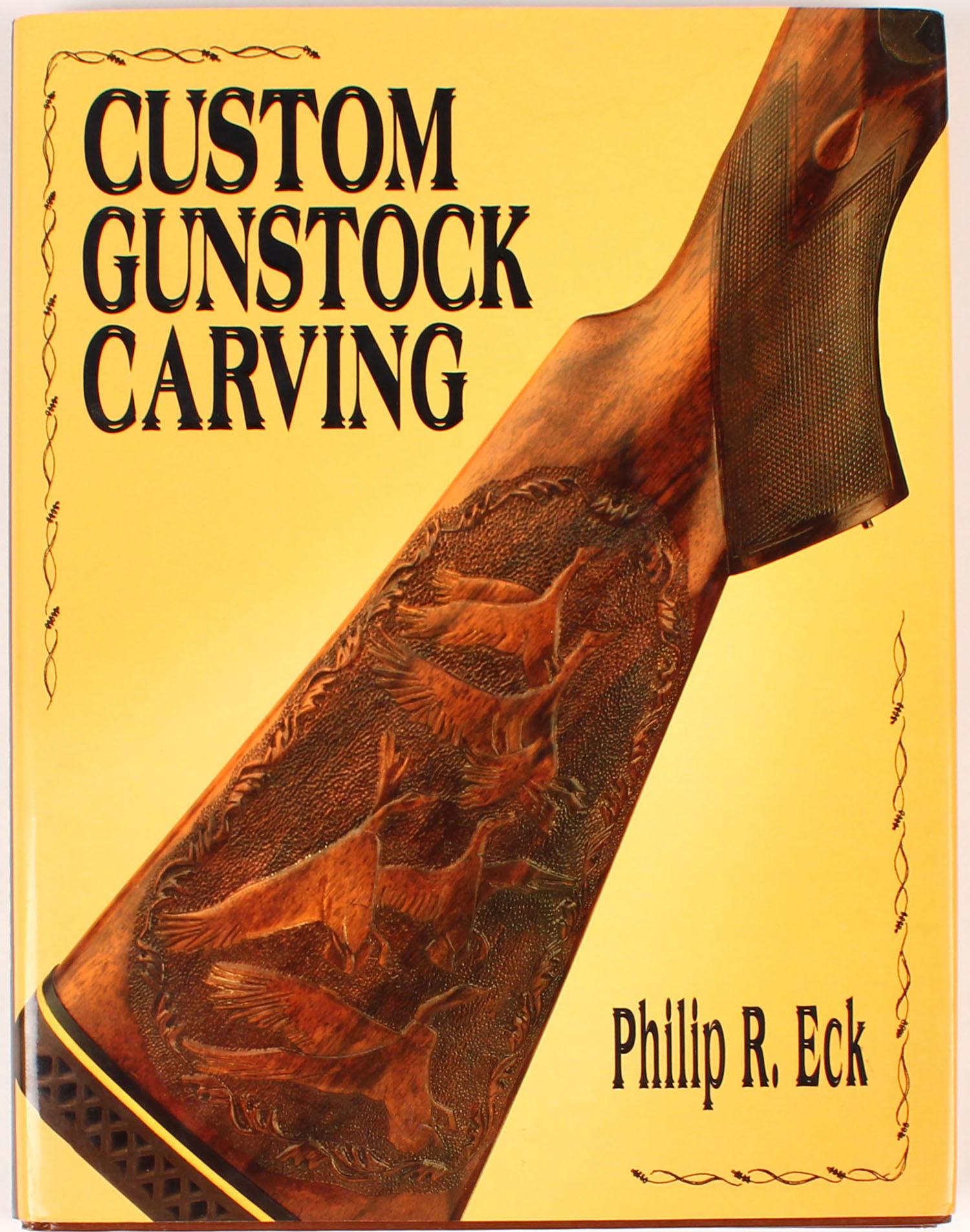 Custom Gunstock Carving by Philip R. Eck 1995, 8 1/2'' x 11''. 198 pages, pages clean, binding tight, hardcover mint, colored images. Value: $250 Grade: MINT - Value: 2 to 100