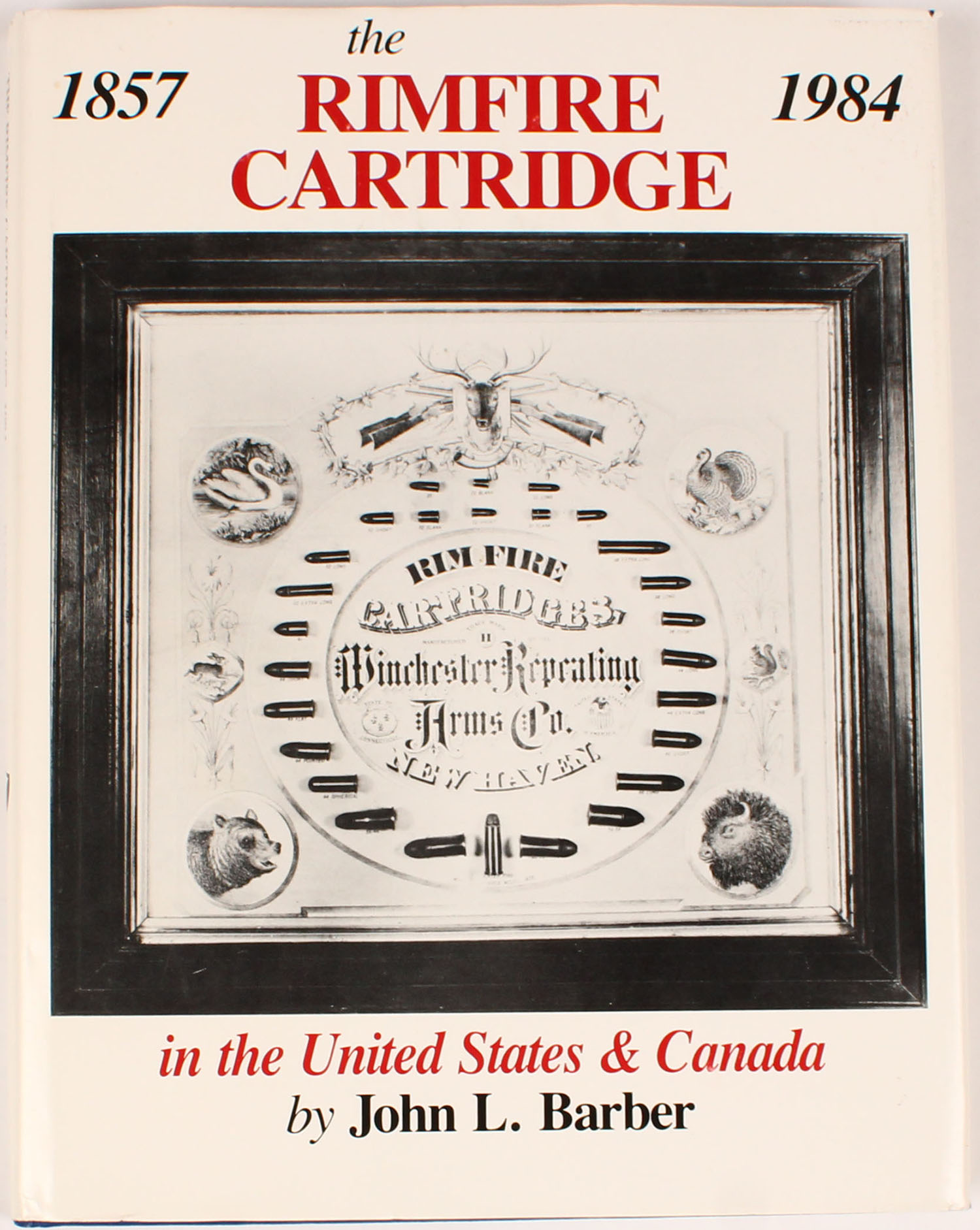 The Rimfire Cartridge in the United States & Canada 1857-1984 by John L. Barber, SIGNED BY AUTHOR, 8 1/2'' x 11''. 221 pages, pages clean, binding tight, hardcover and dustjacket very good, B/W images. Value: $500 Grade: MINT - Value: 20 to 200