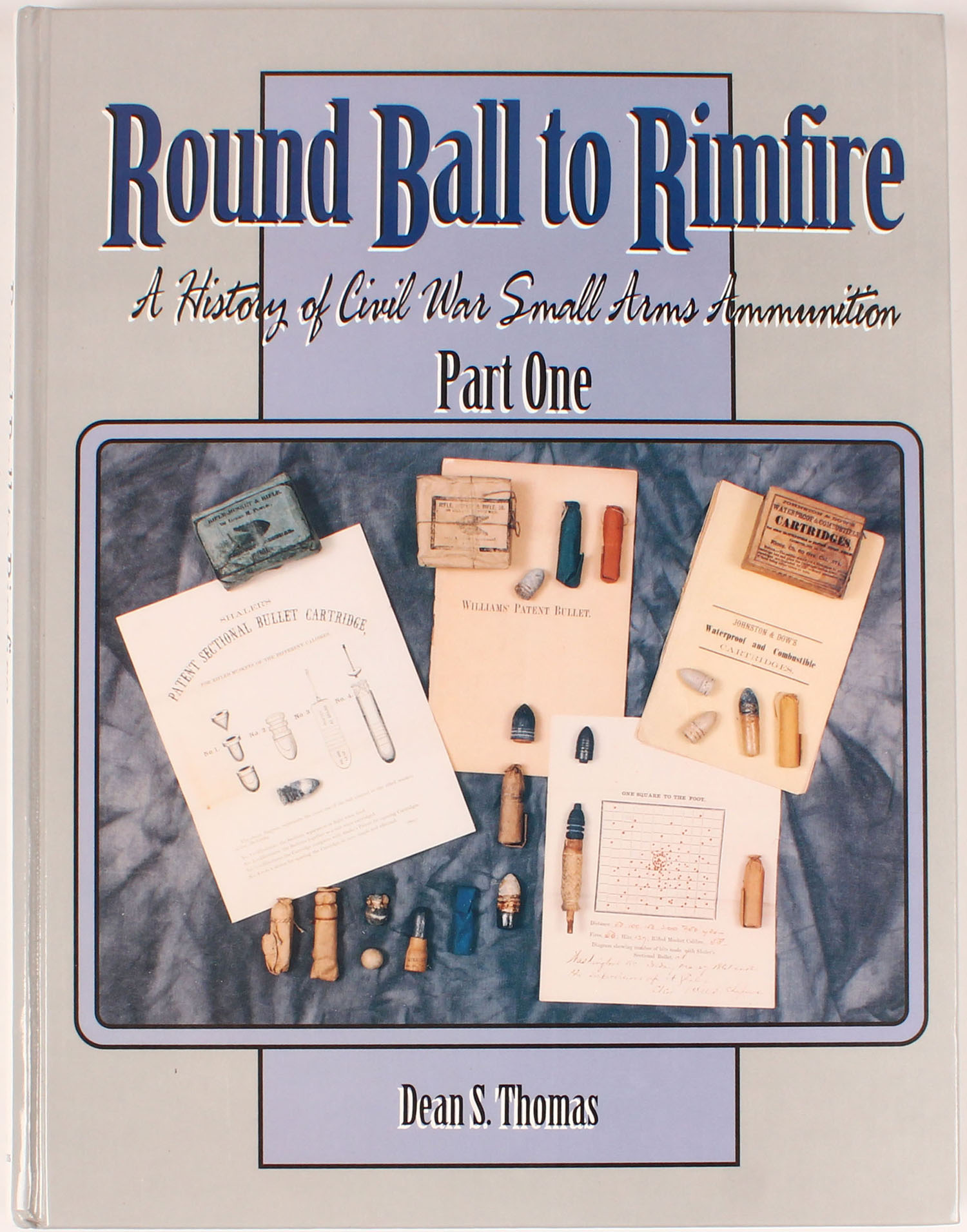 Round Ball to Rimfire: A History of Civil War Small Arms Ammunition Part One by Dean S. Thomas 1997, 8 1/2'' x 11''. 333 pages, pages clean, binding tight, hardcover mint, B/W images. Value: $600 Grade: MINT ++ - Value: 20 to 200