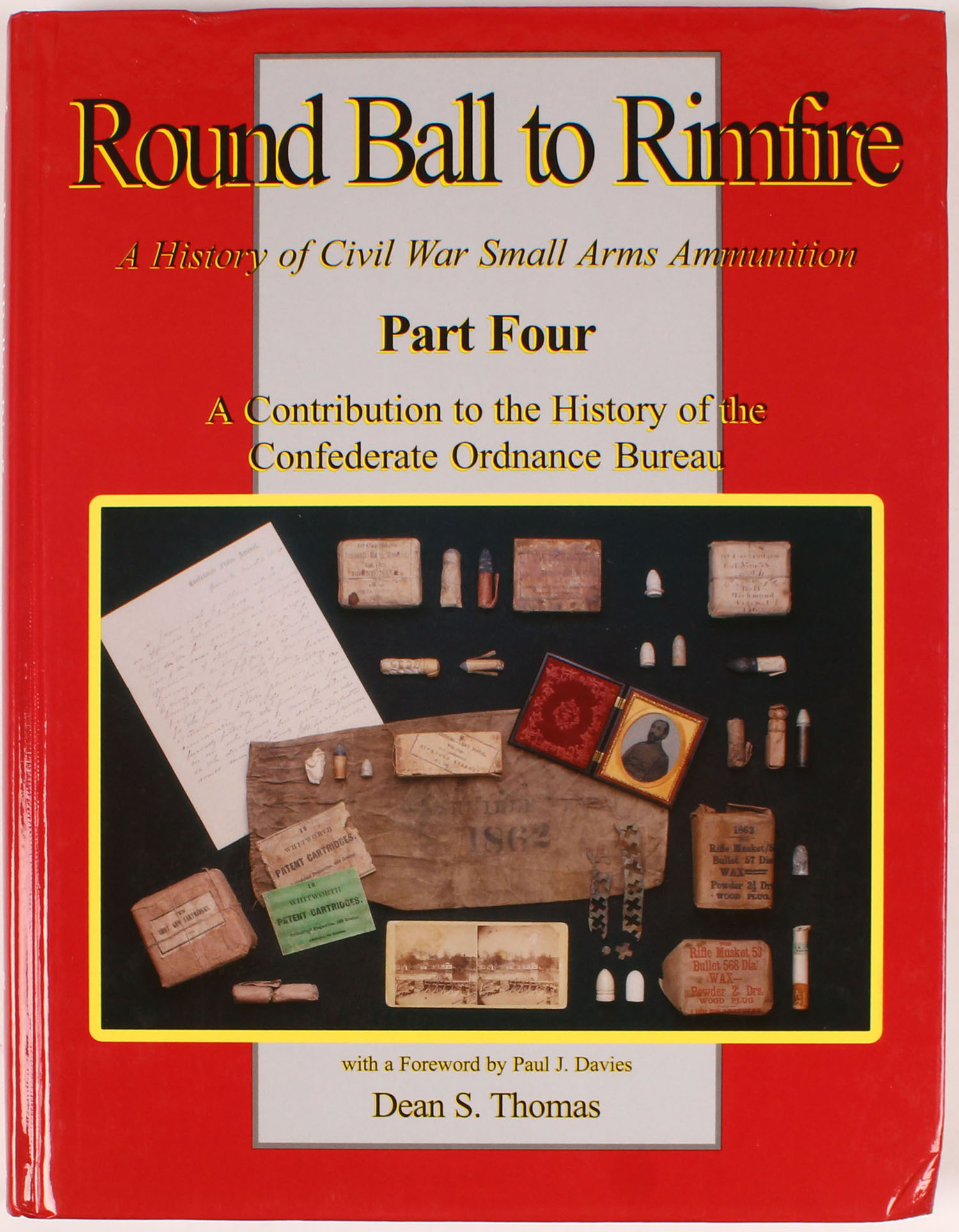 Round Ball to Rimfire: A History of Civil War Small Arms Ammunition. Part Four. A Contribution to the History of the Confederate Ordnance Bureau by Dean S. Thomas 2010, 8 1/2'' x 11''. 312 pages, pages clean, binding tight, hardcover mint, B/W images. Value: $220 Grade: MINT - Value: 20 to 200