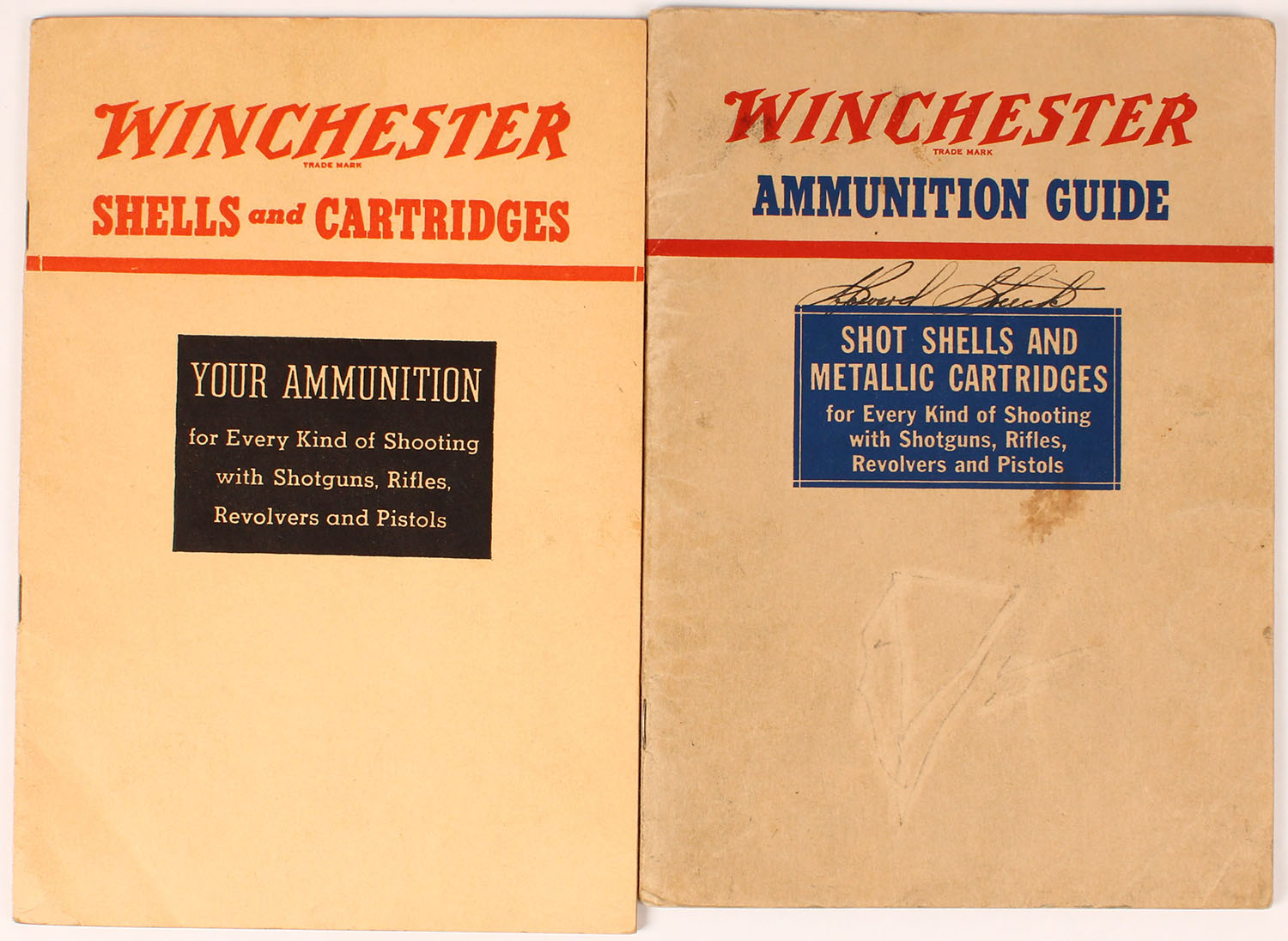 Lot of 2 Booklets (1) Winchester Ammunition Guide 1941, 3rd edition. (1) Winchester Shells and Cartridges 1938. both 6'' x 9''. Staplebound, pages clean, B/W images. Grade: Excellent - Value: 2 to 100