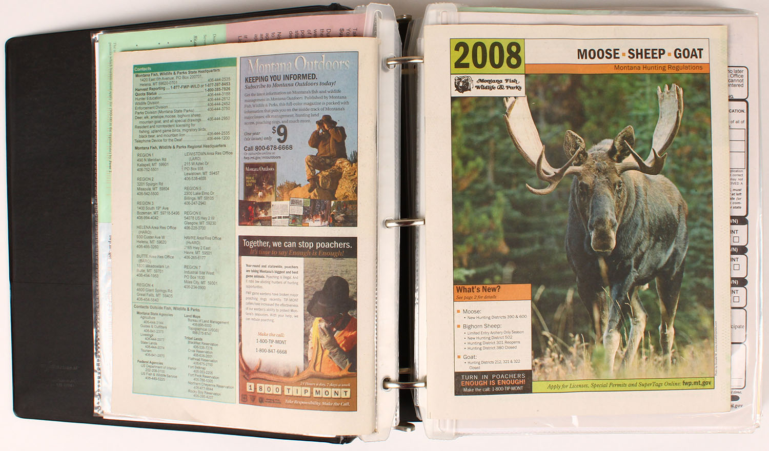 | Large lot of Montana Hunting Regulations in a 3 ring binder. Gra...