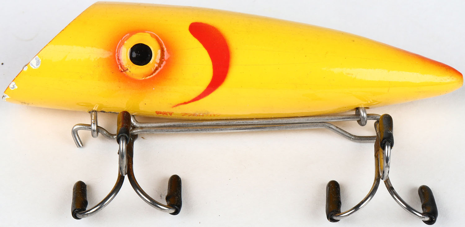 Nelson Salmon Plug, CE, well marked, yellow & red. Grade: Excellent - Value: 2 to 40