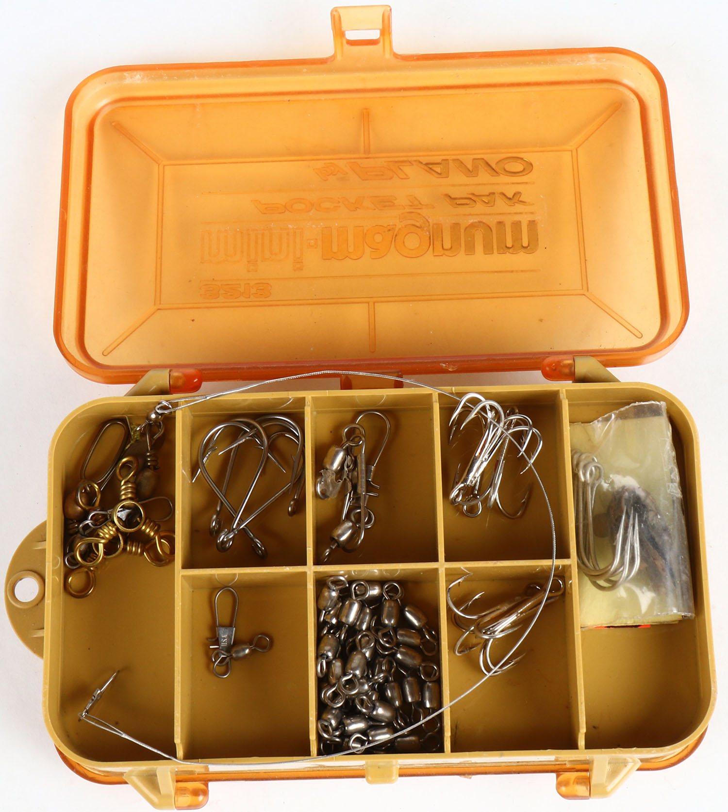 | Mini Mag pocket pak full of spoons, hooks & swivels. Grade: E...