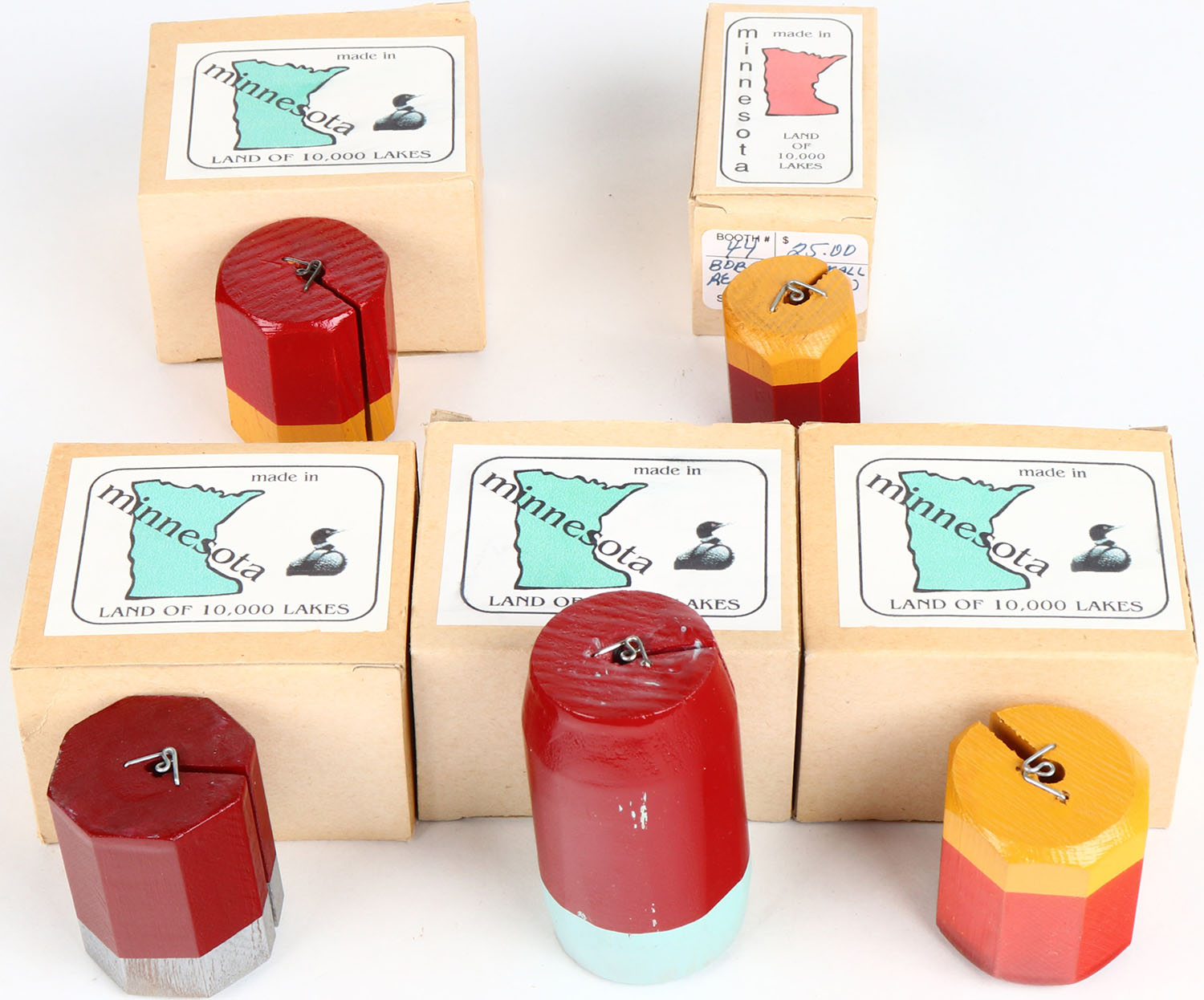 Lot of 5 Fishing Bobbers made in Minnesota in original boxes & unfished. Grade: MINT - Value: 20 to 100